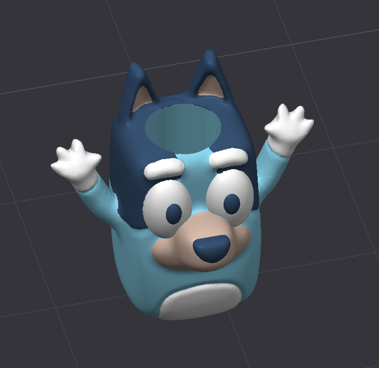 Đây là một hạt Bluey, dùng để gắn lên áo sweatshirt của bạn. Thiết kế được tô màu sẵn cho Bambu AMS để bạn in ra màu sắc sinh động.