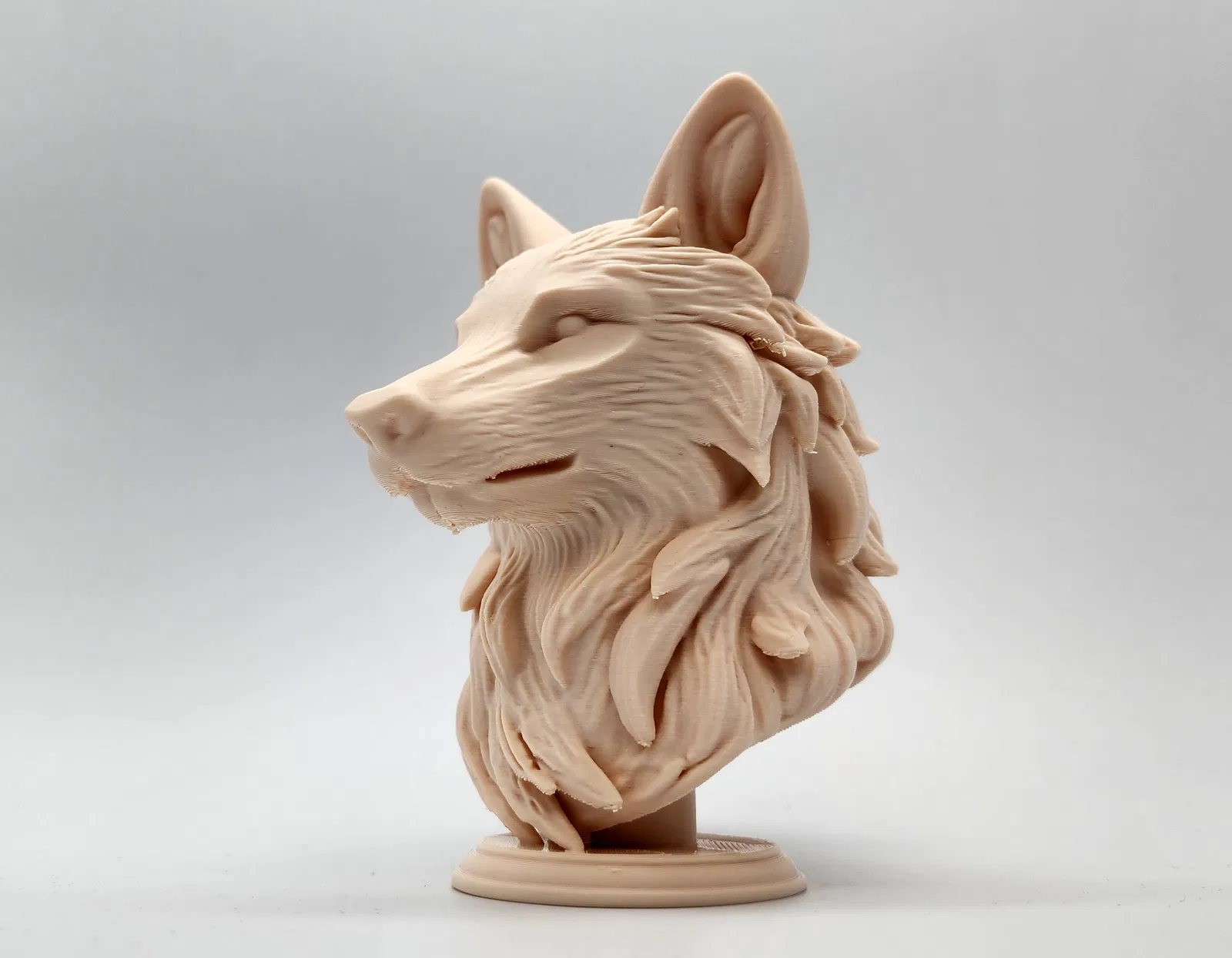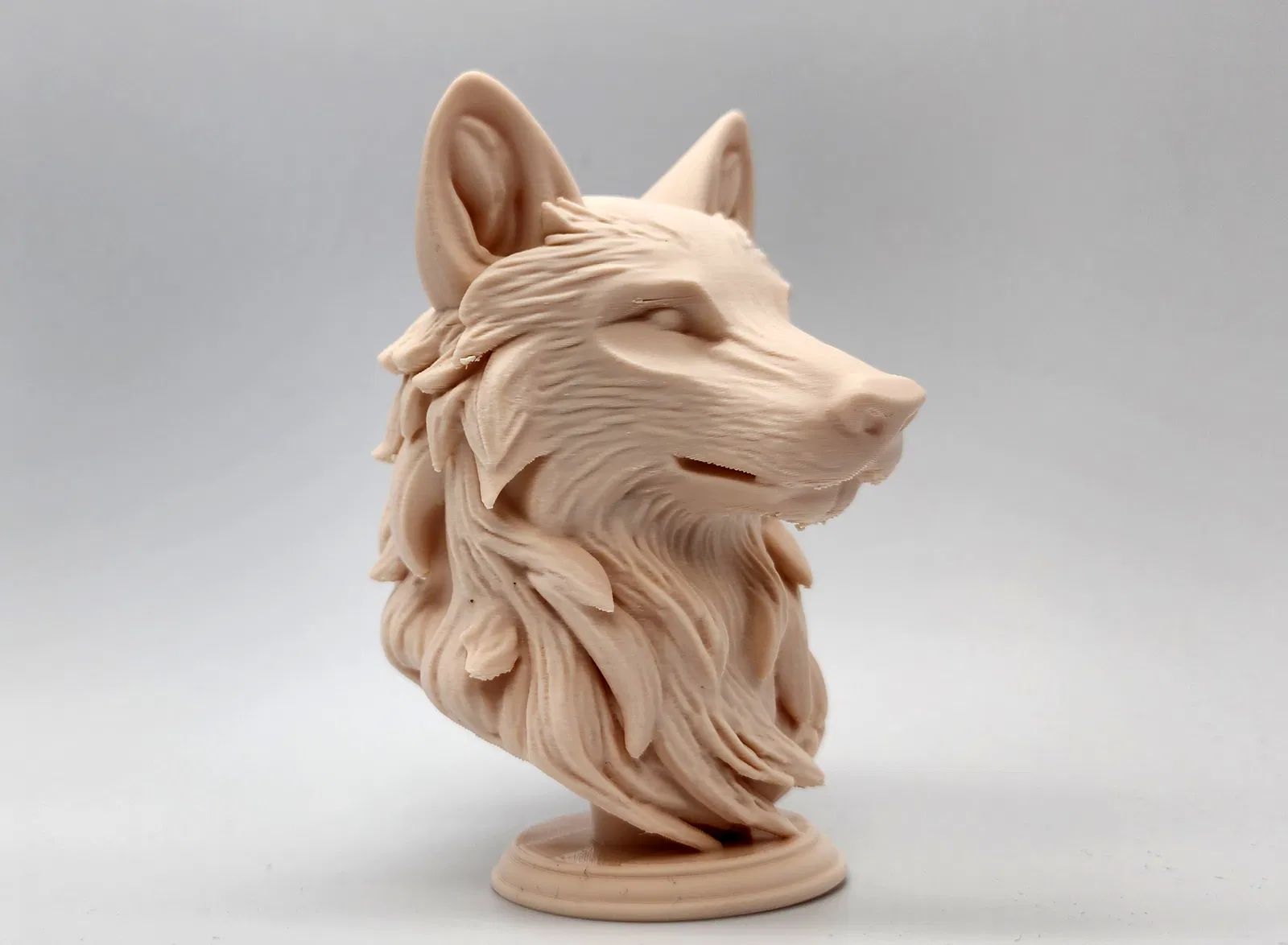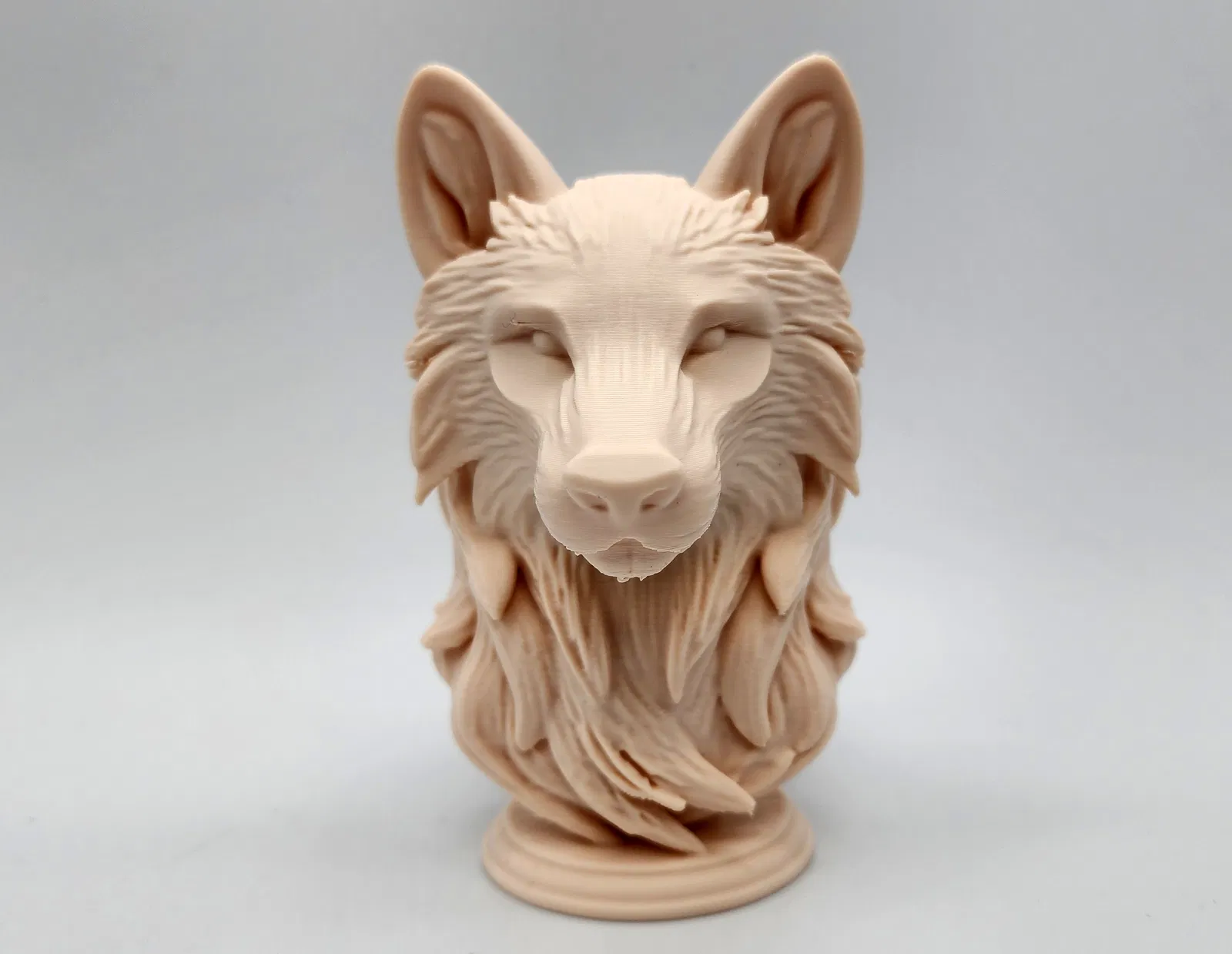 Bức tượng chó sói xám chân thực đặt trên bệ đỡ, với ánh nhìn sắc bén và vẻ ngoài sống động như thật. Hoàn hảo để trưng bày, trang trí hoặc làm quà tặng.
