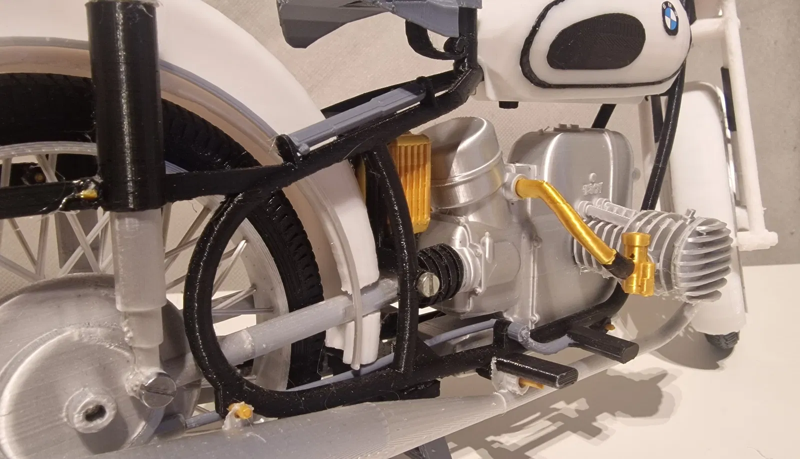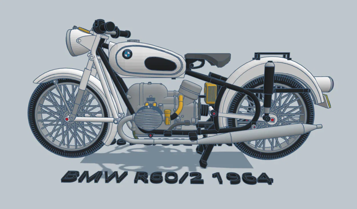 Tải xuống mô hình 3D xe máy BMW R60/2 năm 1964, tỉ lệ 1:6, được thiết kế bởi Ed van der Heijden. Thông tin in chi tiết: Supports: Có, Resolution: Động, Infill: 50% line, Filament: PLA. Lưu ý: Không cần Supports cho bản rem và chạy ở tốc độ 60mm/s.