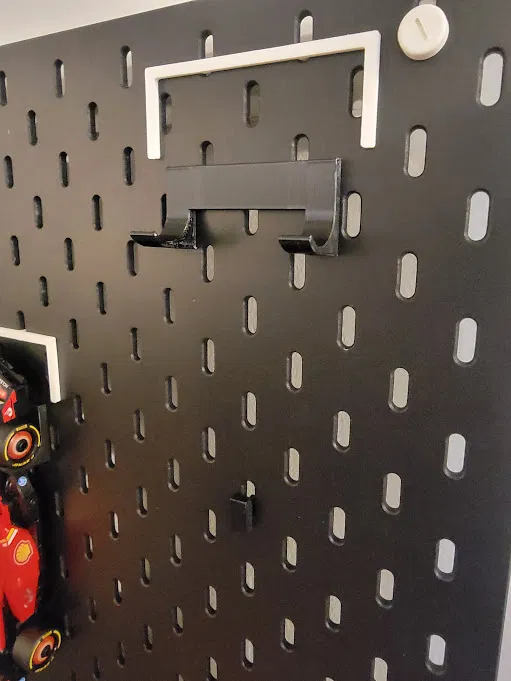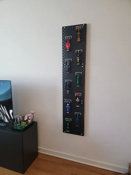 Kệ treo xe F1 Lego Speed Champions lên bảng SKÅDIS, giúp bạn trưng bày và di chuyển xe dễ dàng để theo dõi chức vô địch. Mẫu được tùy chỉnh từ bản gốc để tăng cường độ bền và khoảng cách.