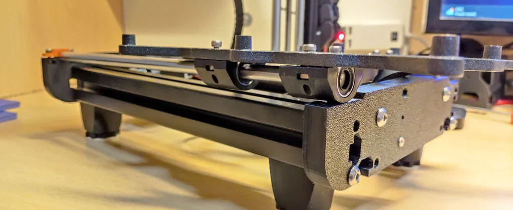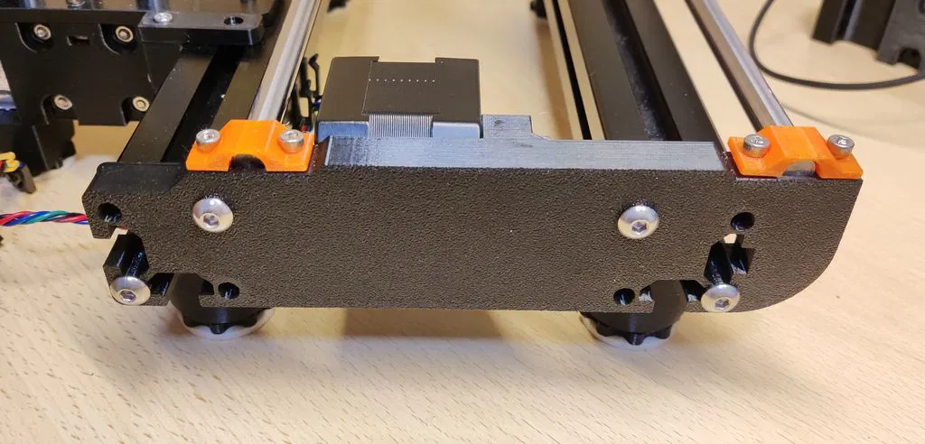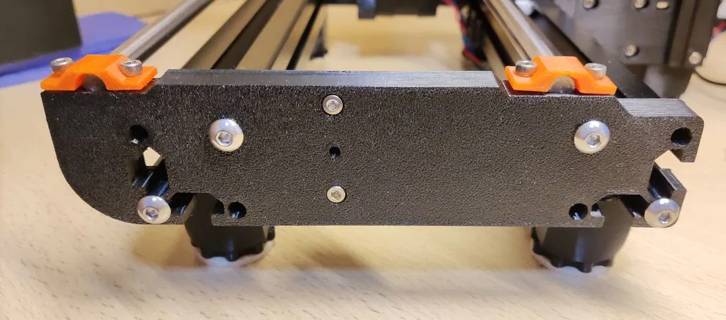 Tui muốn tạo ra các plate để bảo trì các ổ bi của trục trượt mà không cần phải tháo toàn bộ máy in của mình ra. Bằng cách tháo các kẹp giữ thanh thép, trục trượt có thể được tháo ra, và tui đã tạo ra các khe để lắp t-nut mà không cần phải tháo máy in.