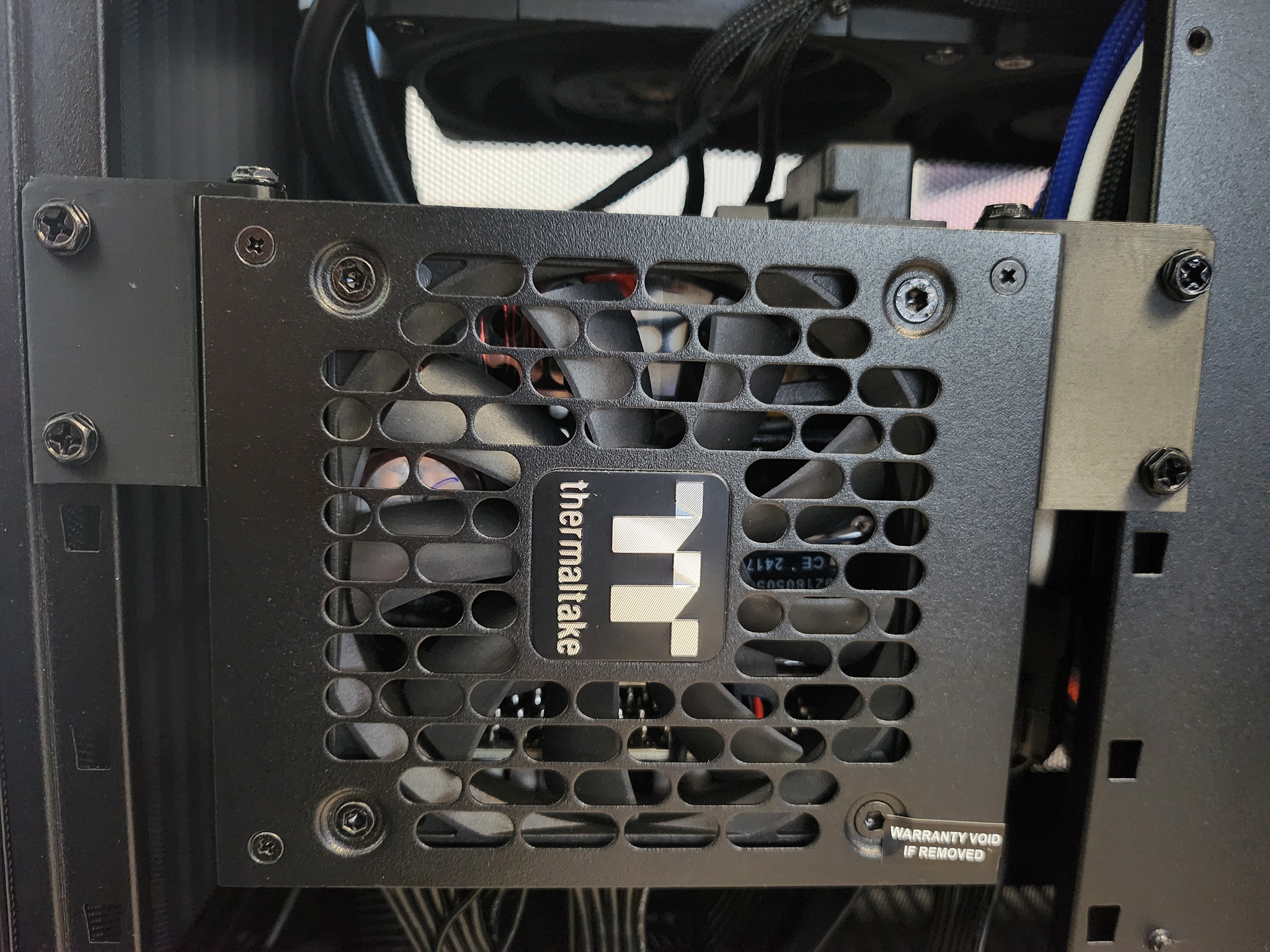 v3: Vị trí gắn phía trên. Cái này nó sẽ đẩy cái nguồn SFX lên cao hơn cỡ một inch đó. Như vậy là đủ khoảng trống cho cái jack cắm nguồn nó không bị cạ vô mấy cái quạt tản nhiệt luôn.