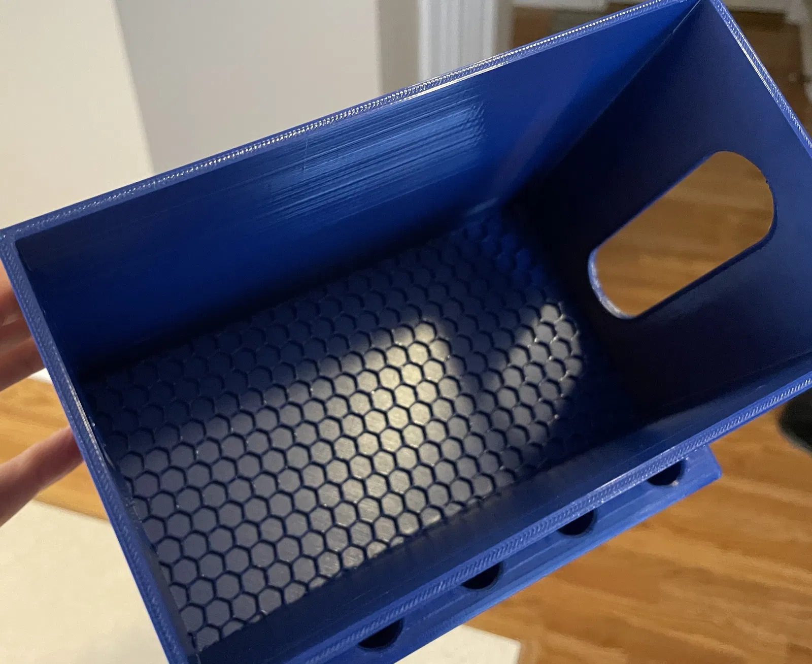 Để thêm phần thú vị và để tưởng nhớ đến sơ đồ phân tử của insulin, tôi đã thêm một bộ sửa đổi vào đáy hộp để loại bỏ lớp điền trên cùng và chọn kiểu tô lưới hình lục giác.