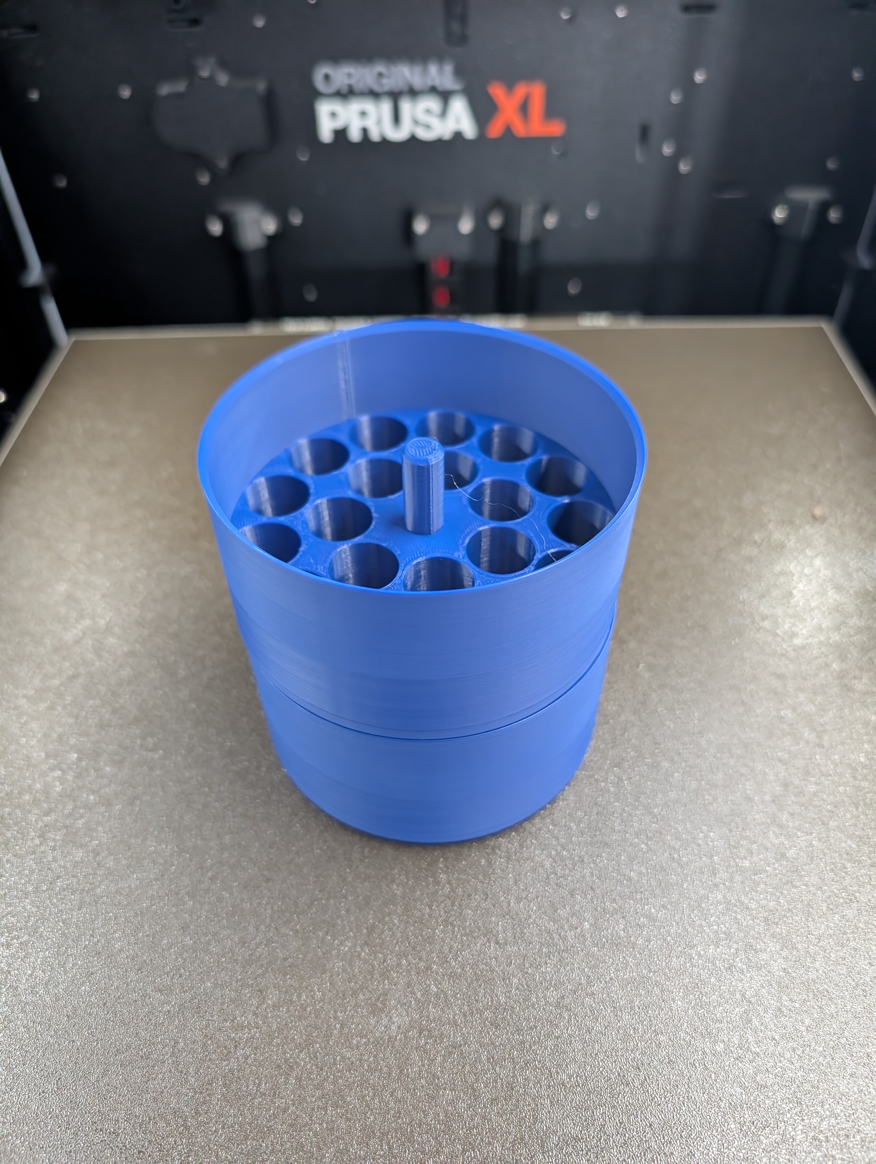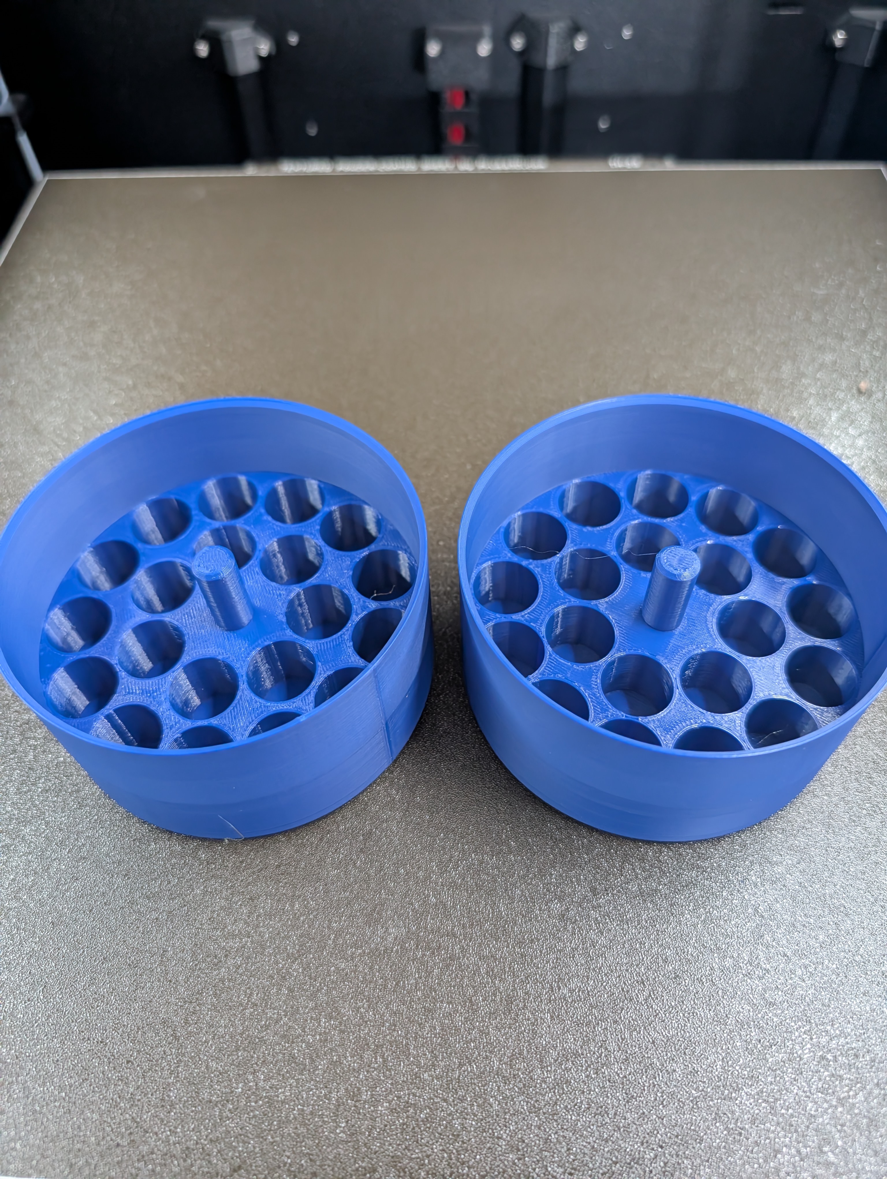 Khuôn in 2 phần, mỗi phần đựng được 20 lọ 3ml, dùng cho bình Hydrapeak 32oz. Thiết kế tối ưu cho việc in không cần support, giữ lọ chắc chắn, dễ dàng xếp chồng và tăng độ chính xác khi in.