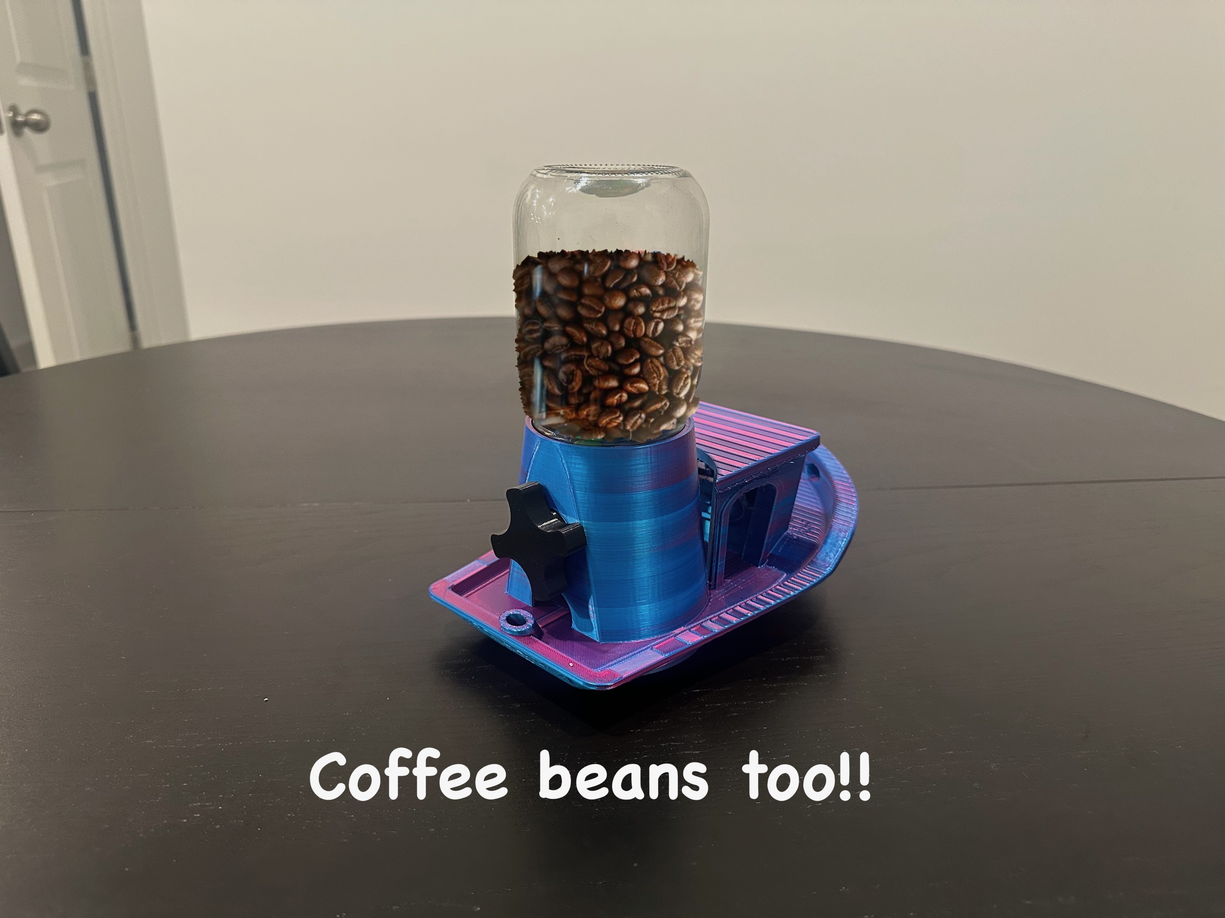 Mô hình Benchy độc đáo, có thể dùng làm hộp đựng hạt, kẹo hoặc cà phê. Cần hũ mason và ốc M4 để hoàn thiện. Hoạt động tốt với kẹo M&M và có thể tùy chỉnh thành kẹo dẻo Benchy.