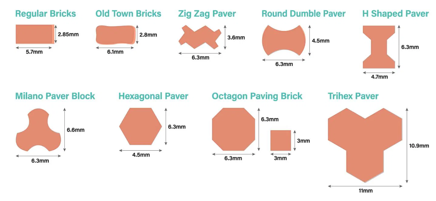 Mua đồ thật đi cho lẹ nha: Gạch: https://www.greenstuffworld.com/en/acrylic-molds/3271-acrylic-molds-bricks.html Gạch cũ: https://www.greenstuffworld.com/en/acrylic-molds/3272-acrylic-molds-old-bricks.html Gạch ba cạnh (Trihex paver): https://www.greenstuffworld.com/en/acrylic-molds/3273-acrylic-molds-trihex-paver.html Gạch lát hình bát giác: https://www.greenstuffworld.com/en/acrylic-molds/3279-acrylic-molds-octagon-paving-brick.html Gạch lát đường zig zag: https://www.greenstuffworld.com/en/acrylic-molds/3275-acrylic-molds-zig-zag-pavement.html Gạch lát hình chữ H: https://www.greenstuffworld.com/en/acrylic-molds/3274-acrylic-molds-h-shaped-paver.html Gạch lát Milano: https://www.greenstuffworld.com/en/acrylic-molds/3276-acrylic-molds-milano-paver-block.html Gạch lát tròn dumble: https://www.greenstuffworld.com/en/acrylic-molds/3277-acrylic-molds-round-dumble-paver.html Gạch lát hình lục giác: https://www.greenstuffworld.com/en/acrylic-molds/3278-acrylic-molds-hexagonal-paver.html