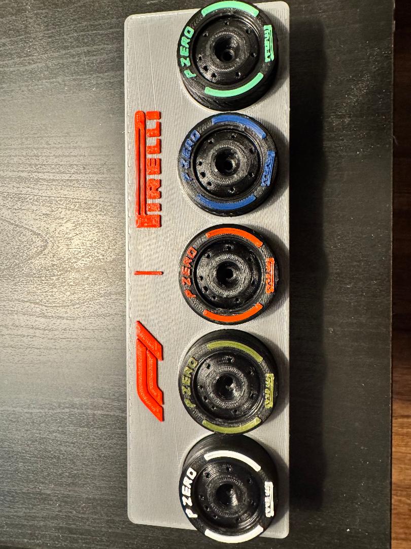 Bộ lốp F1 này được dùng cho kệ trưng bày F1 Tire Rack của JayPotter1969. Bao gồm lốp slick, full wets, inters và một móc khóa lốp slick.