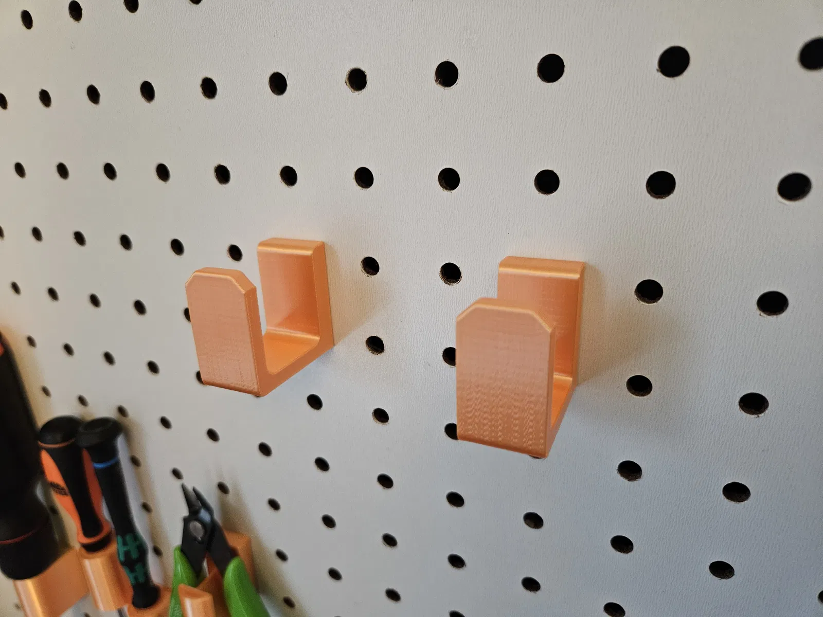 Móc gắn bảng pegboard này có 2 phiên bản in đứng hoặc nằm nghiêng, kích thước phù hợp để đựng bộ lục giác. Phiên bản nằm nghiêng có đế đỡ tích hợp cần gỡ bỏ. Đã thêm móc dây gắn nằm nghiêng.