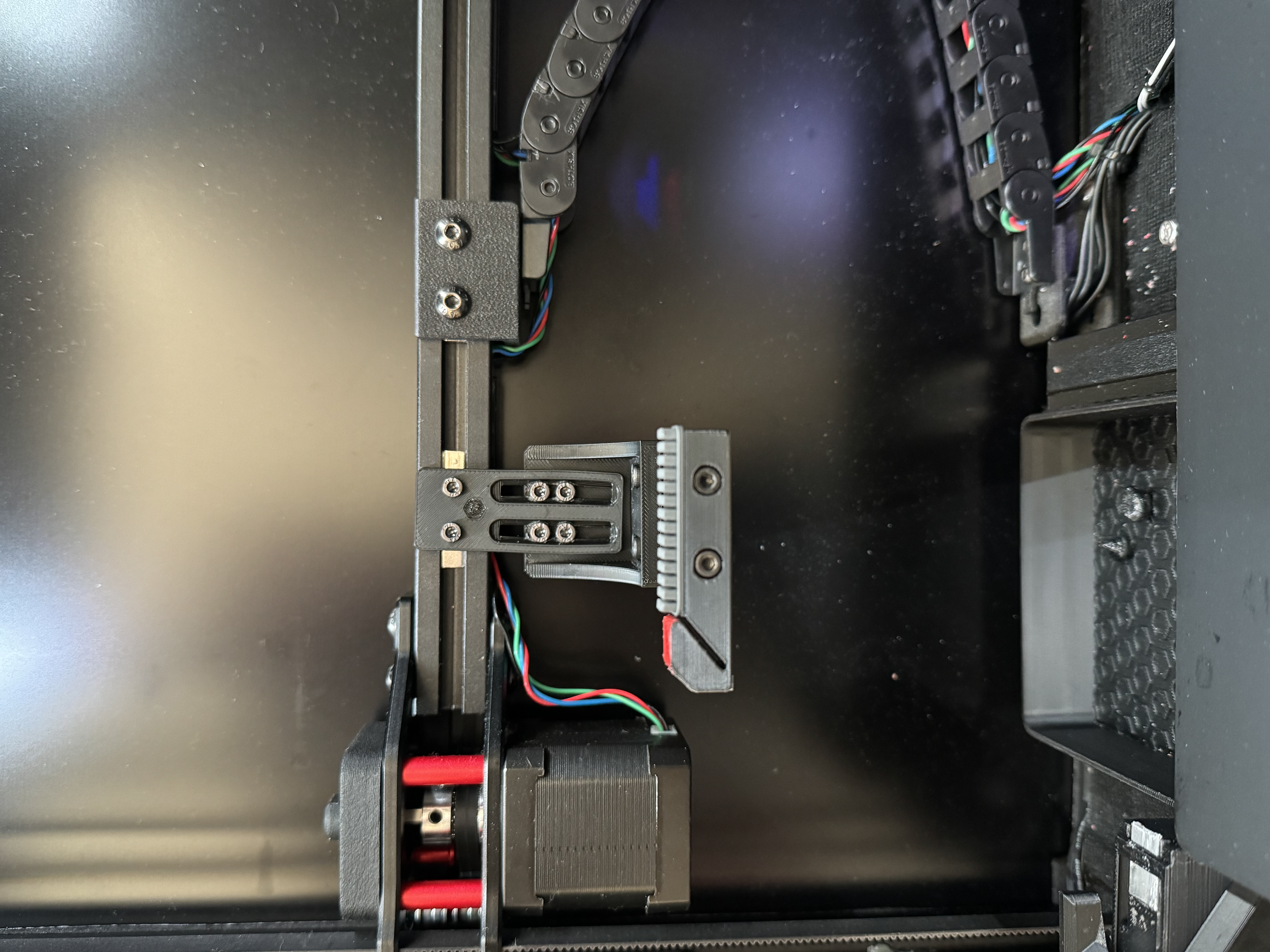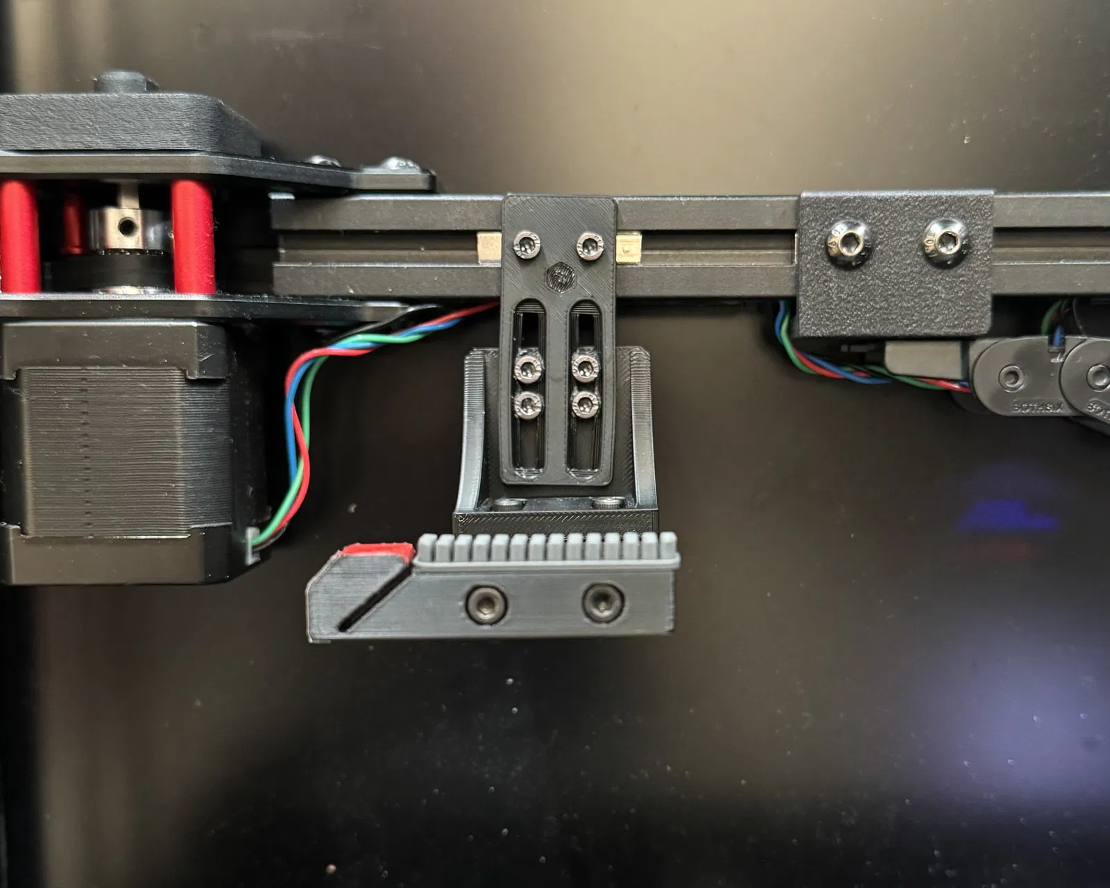 Nó được gắn vào ray dẫn động, nghĩa là bạn không cần hạ thấp chiều cao Z (trên Voron 2.4) để lau trên cọ rửa cố định trên bàn máy. Nếu bạn hạ thấp đầu máy về phía sau bàn máy để lau, đầu máy của bạn có thể va chạm với các bộ phận in ở khu vực đó. Cọ rửa gắn trên ray dẫn động giải quyết vấn đề này vì bạn không cần thay đổi chiều cao Z để lau.