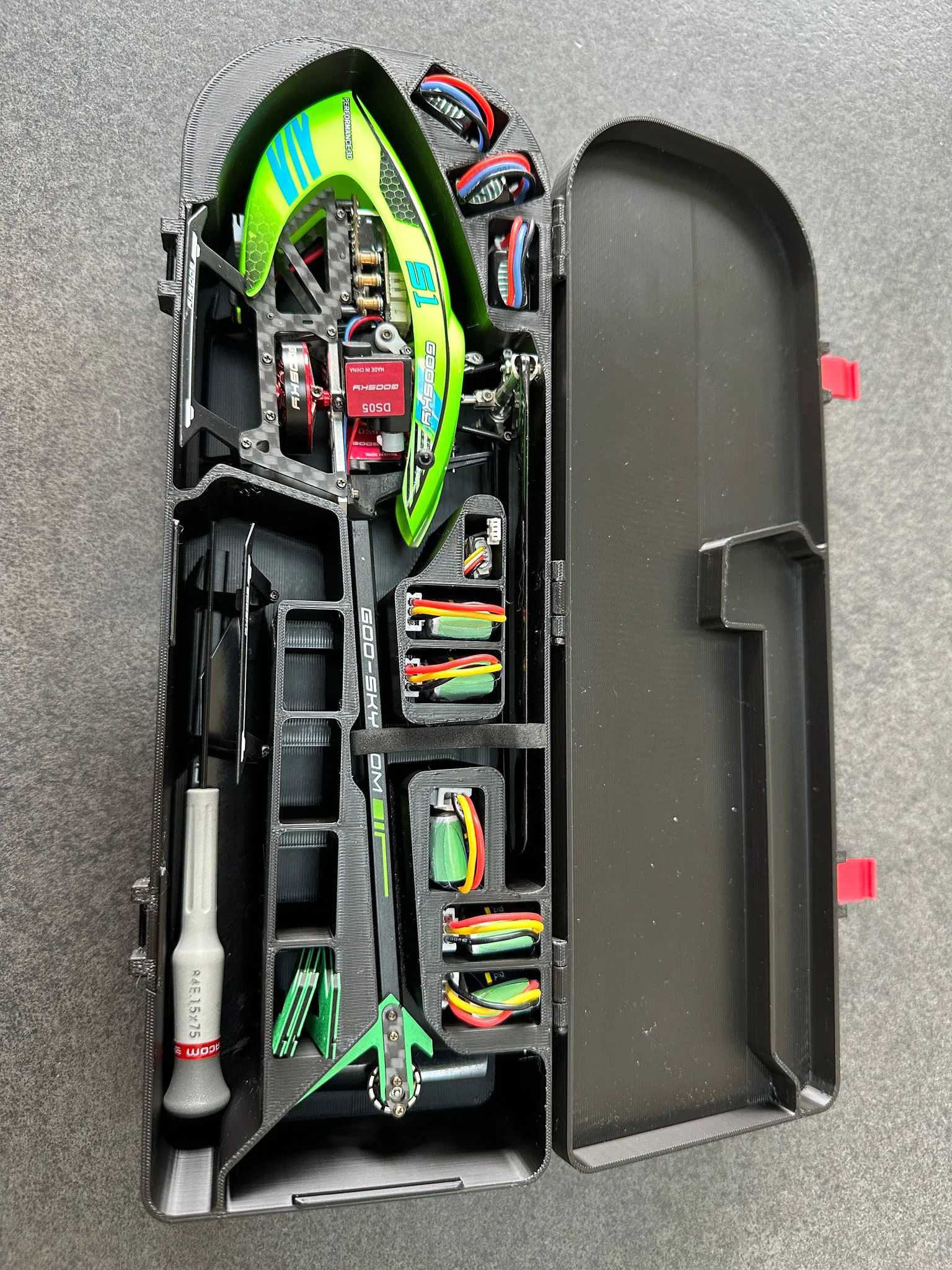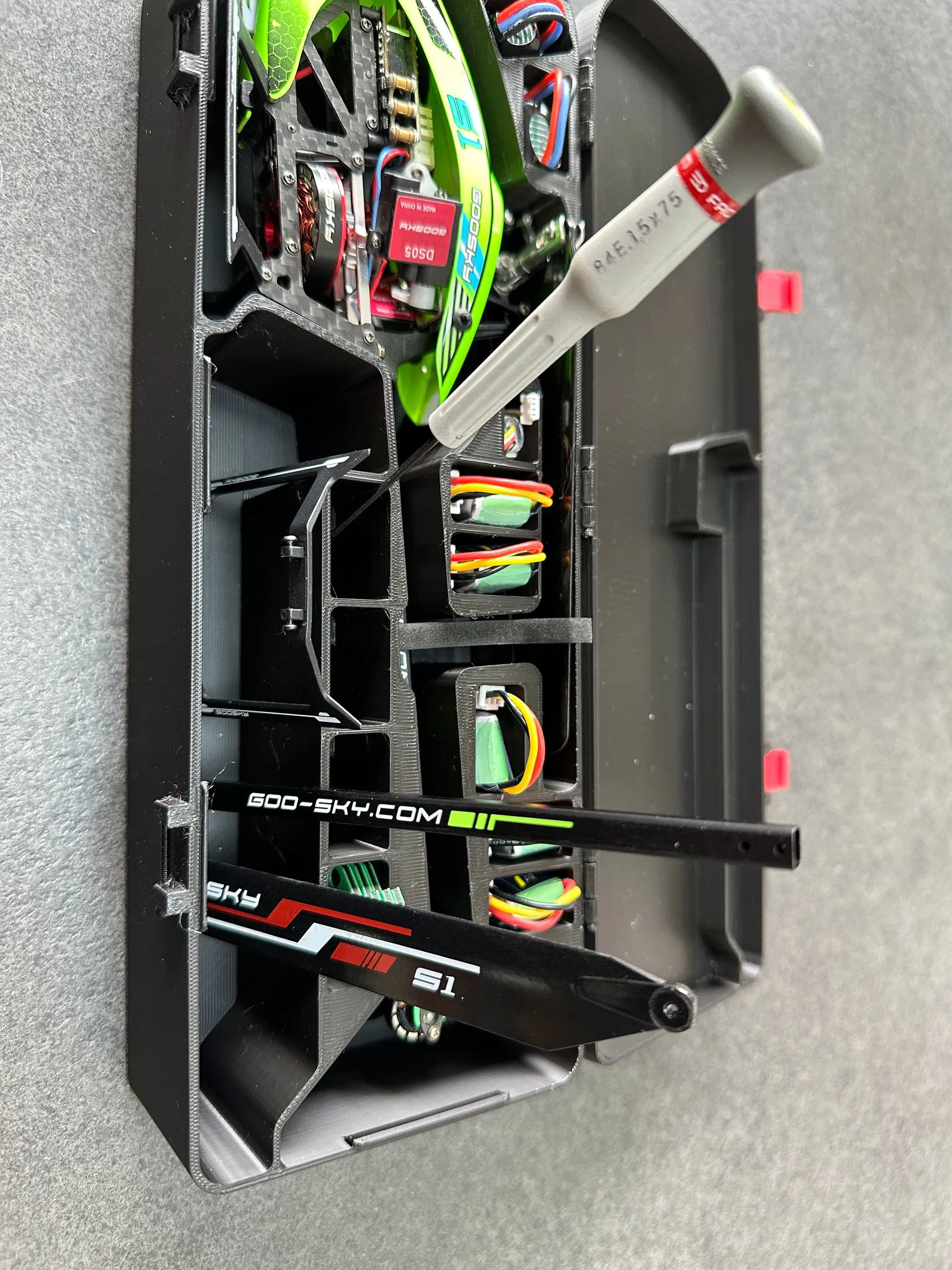 Phiên bản mới của hộp tối ưu hóa cho trực thăng Goosky S1. Thiết kế mới, chắc chắn, không dùng nam châm, có chỗ cho 12 pin LiPo + 1, bộ chuyển đổi Bluetooth, phụ tùng thay thế và dụng cụ. Giữ nguyên kích thước với V1, dễ dàng lấy pin và in được trên hầu hết các máy in.