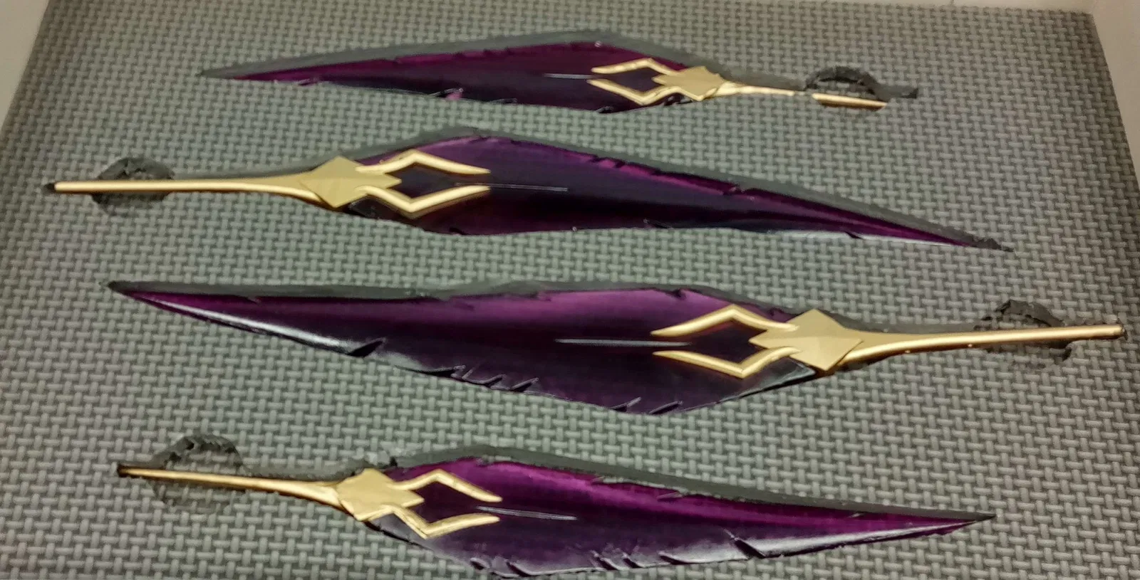 Dao lông vũ cho Xayah trong Liên Minh Huyền Thoại, có thể in nhiều kích cỡ khác nhau để tạo ra vài món khác nhau cho cosplay. Tôi khuyên bạn nên in riêng từng món vì sẽ dễ dàng hơn nhiều để sơn phần tay cầm khi nó là một bộ phận tách rời.