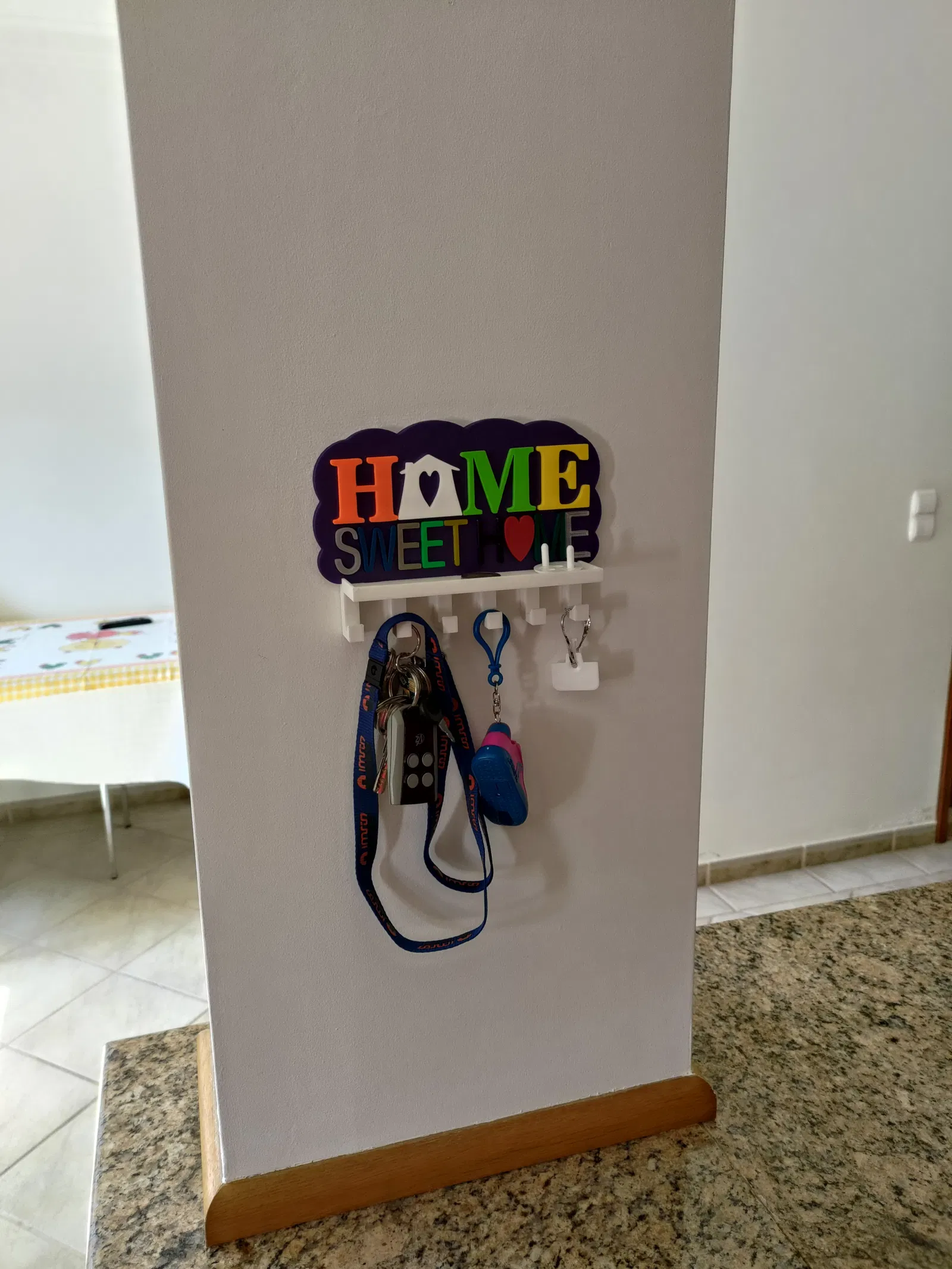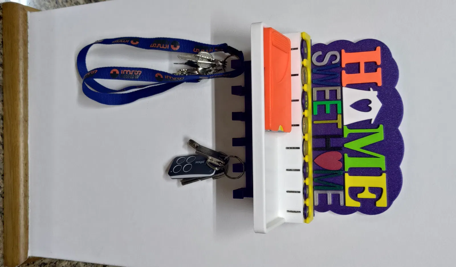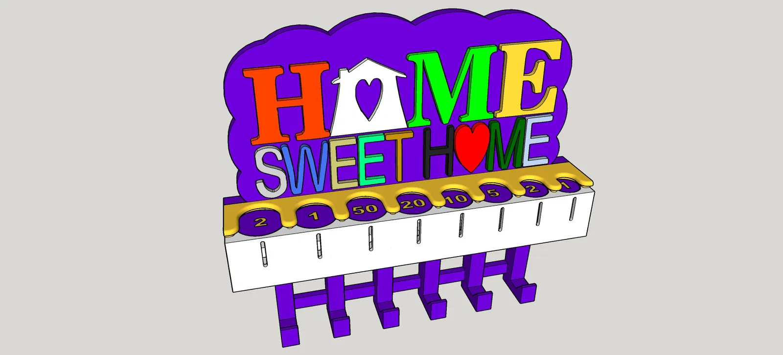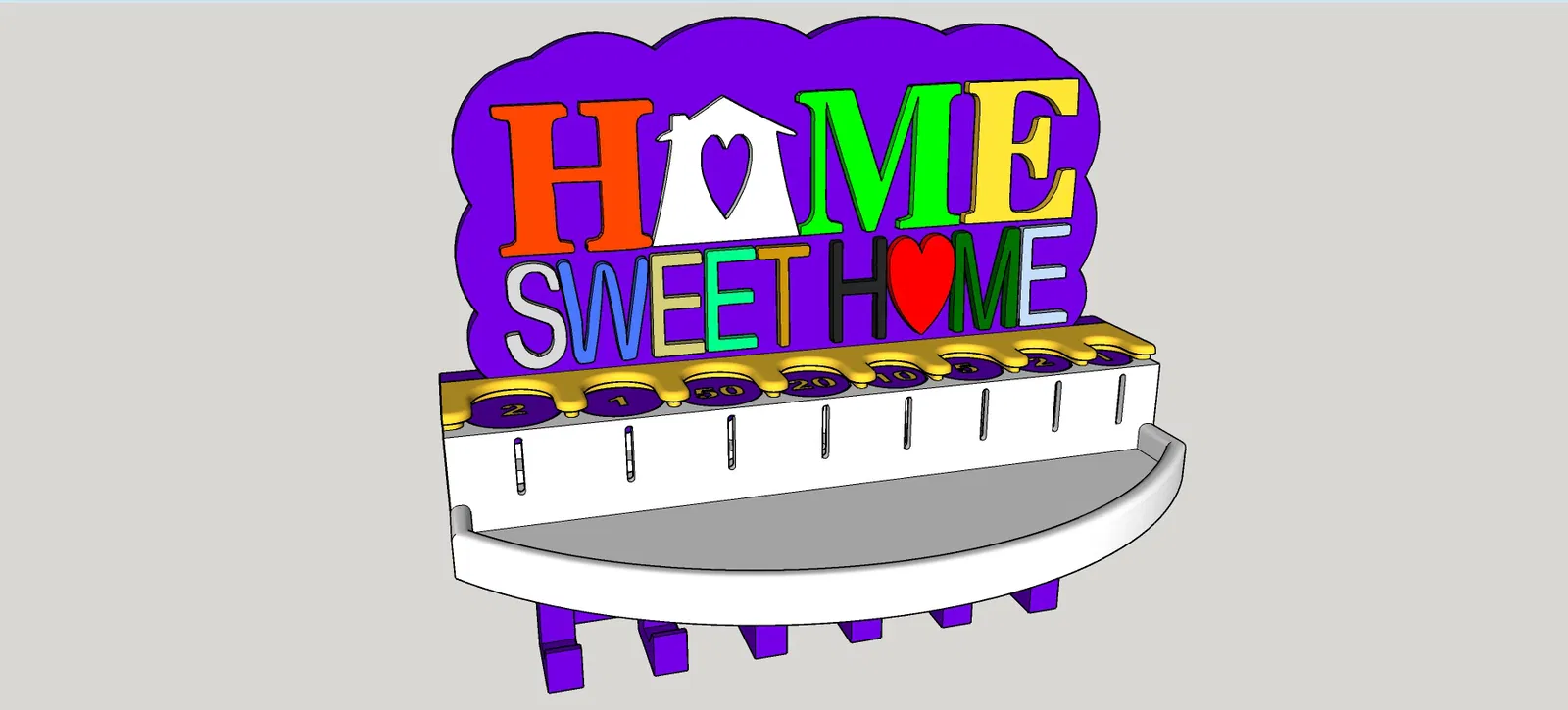Vợ tui nhờ tui làm cái móc chìa khóa cho bếp, chỗ để chìa khóa, remote cửa cuốn cửa xe mà còn dư chỗ để mấy thứ lặt vặt hay bỏ túi như tiền xu hay gì đó. Sau khi tìm trên mạng thì tui cũng kiếm được cái mẫu hay hay rồi làm cái này. Mong mọi người thích nha. Trong trường hợp của tui thì tui in mấy cái chữ bằng nhiều màu và vật liệu khác nhau, nhưng mà tùy mỗi người chọn vật liệu thôi. Trong cái dự án này thì tui dùng PLA, PETG và ABS, in lớp dày 0.2mm, vì tui muốn nó có nhiều màu nhất có thể nên tui dùng hết mấy cuộn filament có sẵn bất kể loại gì. mấy cái chữ thì nó khít với đế, nhưng tui có dùng keo dán nhựa để cố định lại cho chắc. cái khay thì nó cũng khít với đế nên tui không có dán, thực tế là tui đang dự tính nâng cấp để cái này có thể tháo ra lắp vô cái mới, kiểu như lego. Lưu ý: Nếu mấy bạn muốn in chữ riêng lẻ hoặc có cái khay lò xo nhám, tui khuyên nên lật ngược chữ và đế lại để có bề mặt nhám ở mặt trước của các chi tiết như tui đã làm, cái này sẽ làm cho sản phẩm hoàn thiện hơn. 25/06/2022 Sửa file base.stl lại, hết lỗi khi import vô slicer. Cảm ơn Killerklamsi đã báo lỗi này nha. 12/03/2025 Bổ sung vô cái móc chìa khóa cũ, giờ có thêm file mới cho cái chỗ để tiền xu, có 2 loại khay và 1 loại không có khay. Cái chỗ để tiền xu này dựa trên dự án của MAXimator tìm thấy trên Thingiverse và Printables theo link bên dưới: https://www.thingiverse.com/thing:2275395 Lưu ý: Cái chỗ để tiền xu này cần có lò xo, giống như mẫu gốc thì loại lò xo ở link bên dưới là một lựa chọn: https://www.amazon.de/dp/B00GN3BJT4/?tag=eselkfilmeabs-21