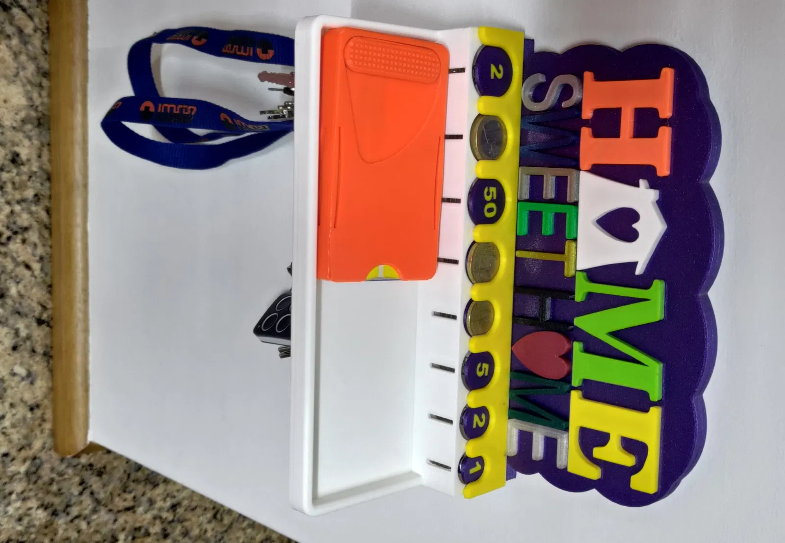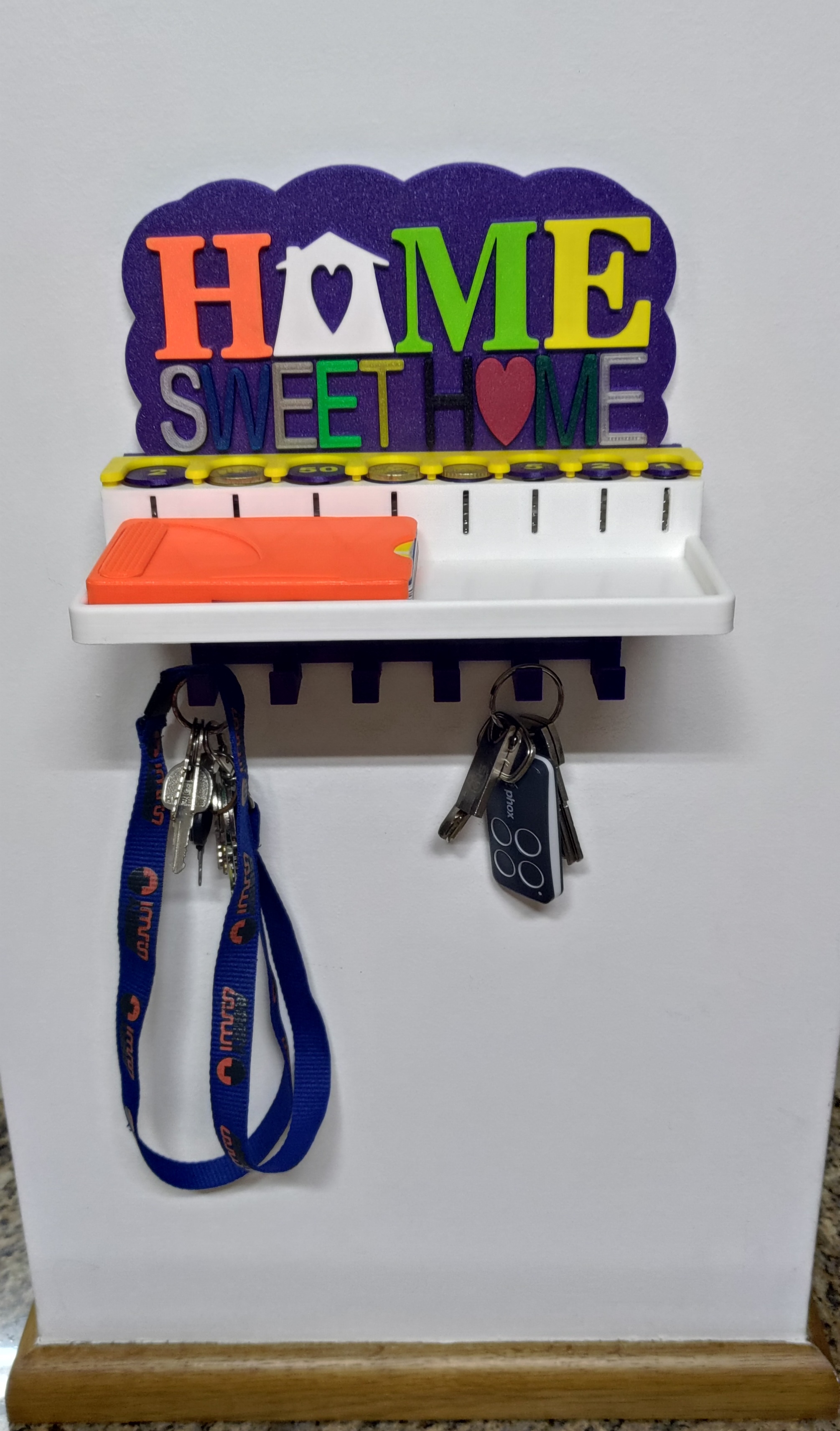 Móc chìa khóa kiêm chỗ đựng tiền xu tiện lợi cho bếp, với thiết kế thông minh giúp bạn cất giữ chìa khóa, remote và cả tiền xu. Có thể tùy chỉnh màu sắc và vật liệu in, với các nâng cấp mới cho khay đựng tiền xu.