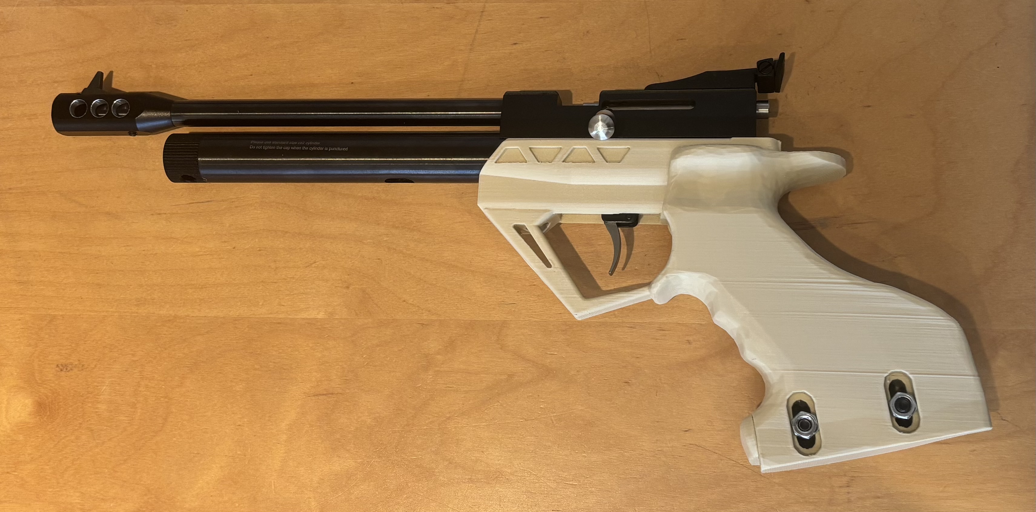 Tay nắm đích được thiết kế riêng cho súng lục hơi SMK CP1/CP2, vừa vặn trên máy in Prusa Mini. Phiên bản v2 đã được cải tiến để giảm thời gian in, vật liệu và hỗ trợ, đồng thời tách rời các bộ phận để dễ dàng in ấn.