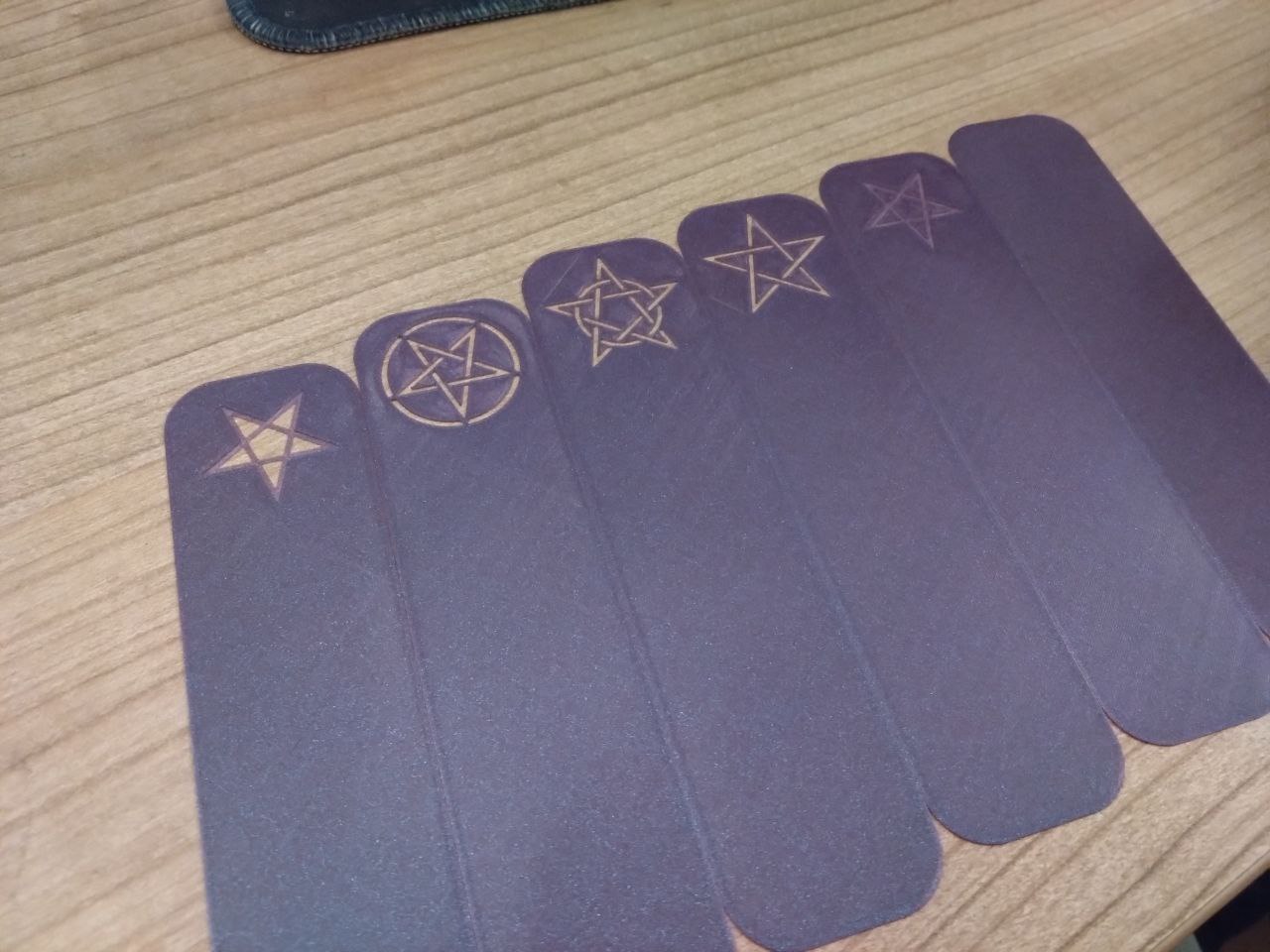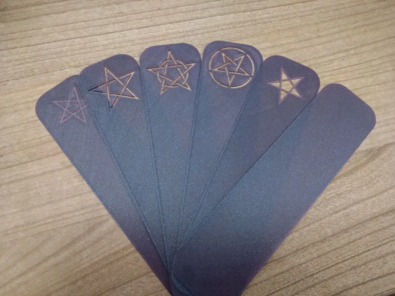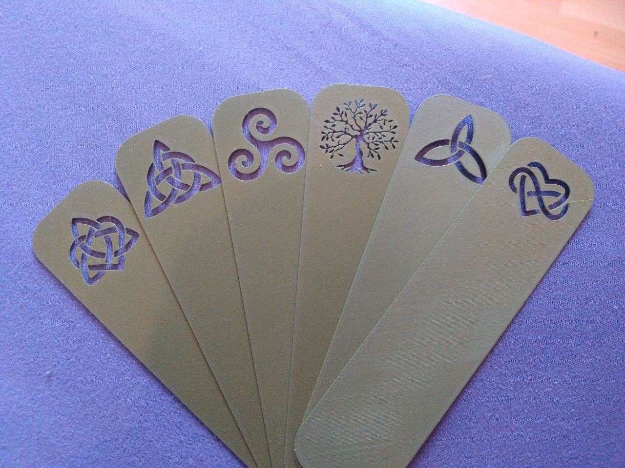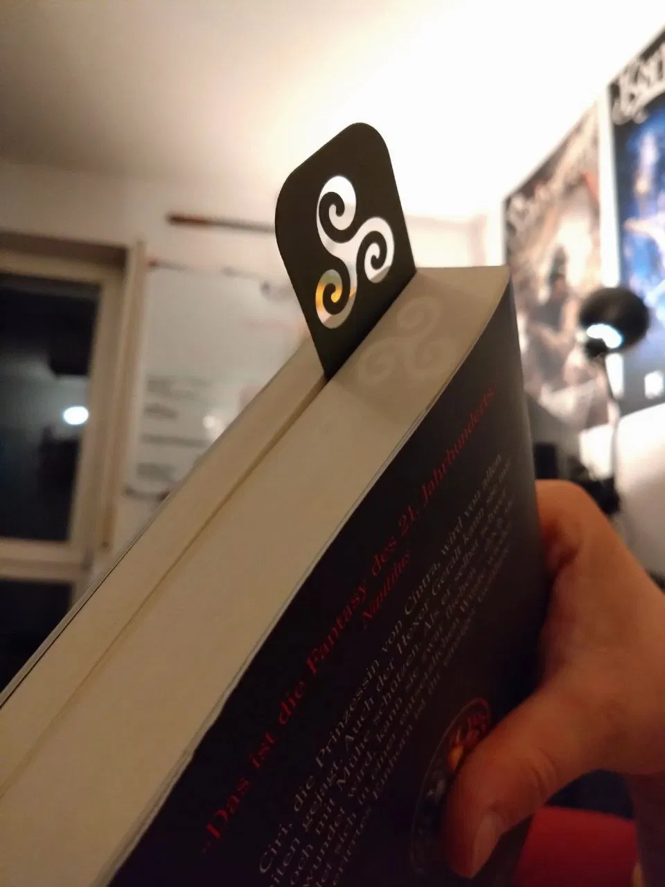 Phiên bản làm lại của mấy cái bookmark với thêm mấy hình nữa nè. Cái dáng mỏng của nó không có làm hư sách hay gáy sách đâu, cũng không có làm cong giấy như mấy cái bookmark dày cui khác đâu. Mấy cái hình như triskelion mà có ánh sáng chiếu vô là nó tạo bóng đẹp lắm luôn.