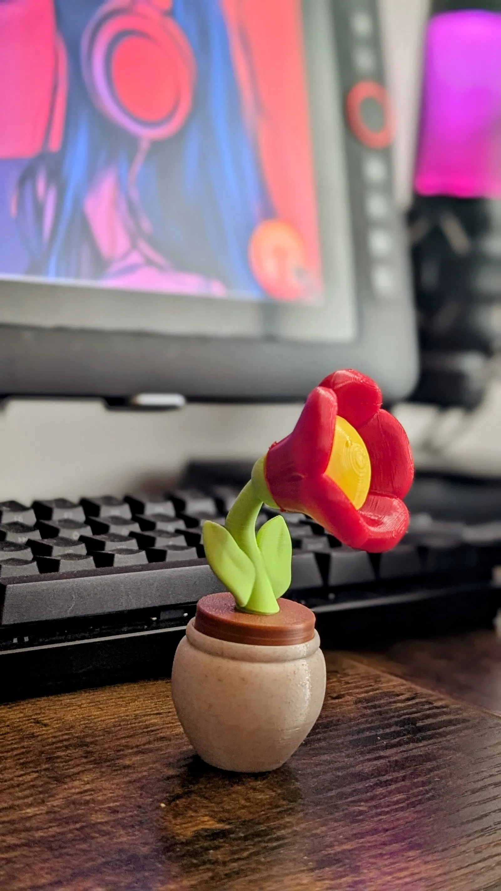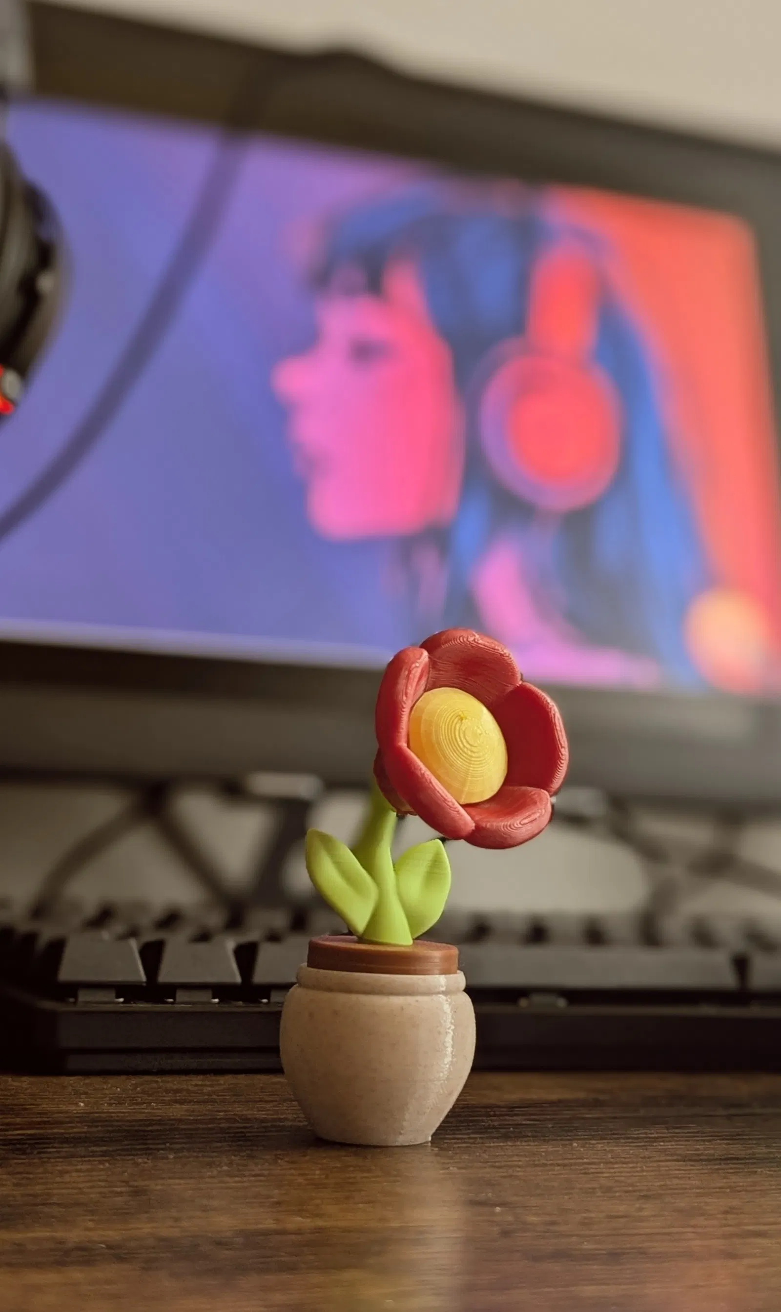 CÀI ĐẶT: Nozzle: 0.4 mm Layer height: 0.2 mm Infill: tối đa 15% Brim: cần cho các bộ phận center piece, petal Brim và support: chỉ cần cho stem Không cần: pot, soil