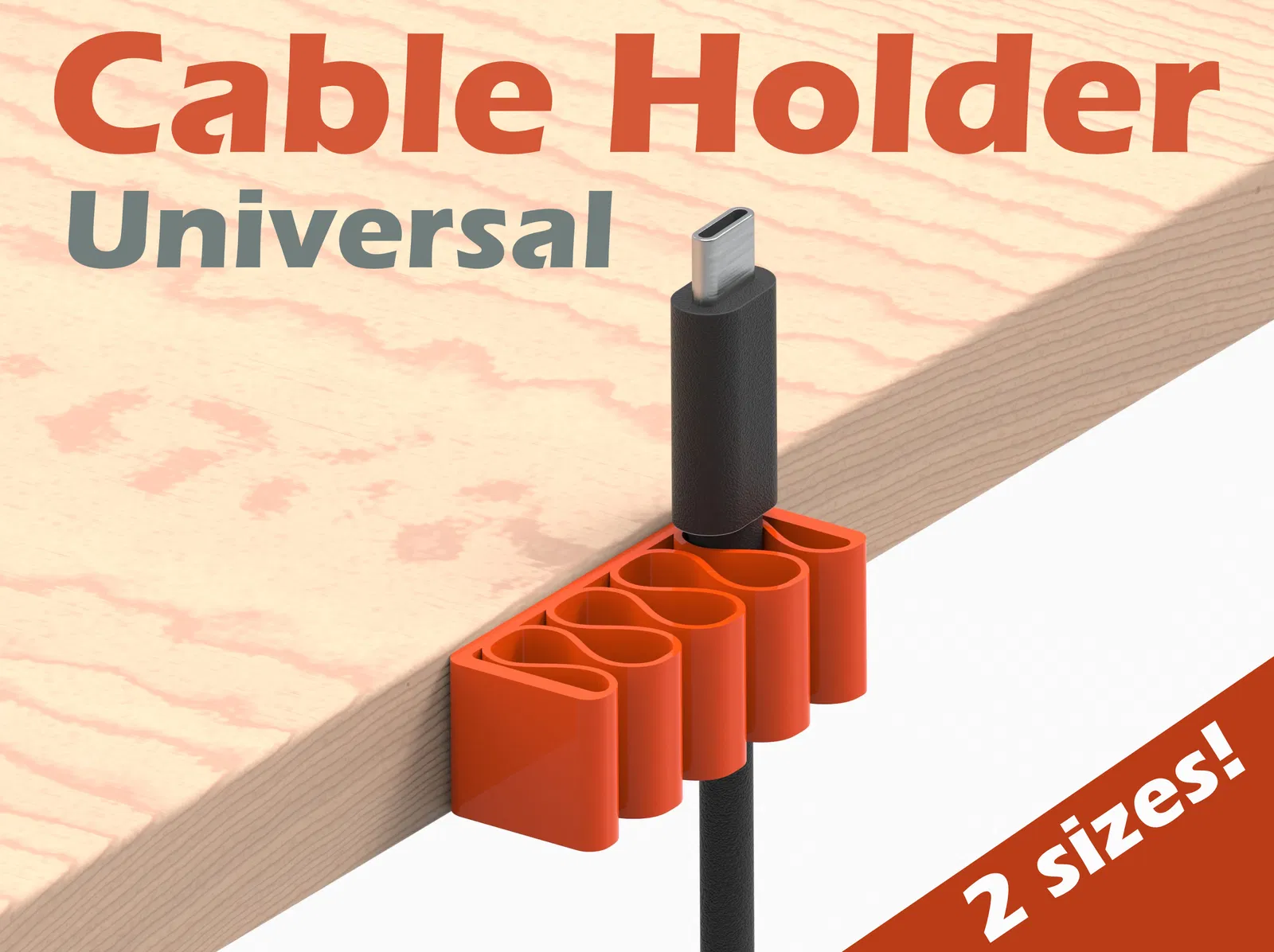 Giá Đỡ Dây Cáp để bàn, hoàn hảo cho sạc. Gắn bằng băng dính hai mặt. Có thể tùy chỉnh với file STEP :)
