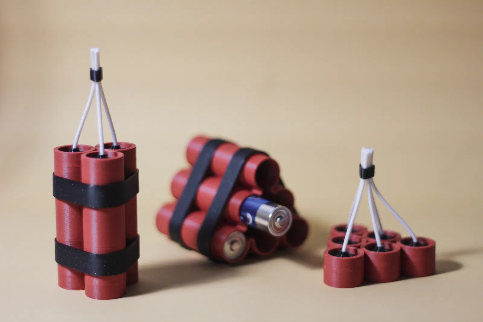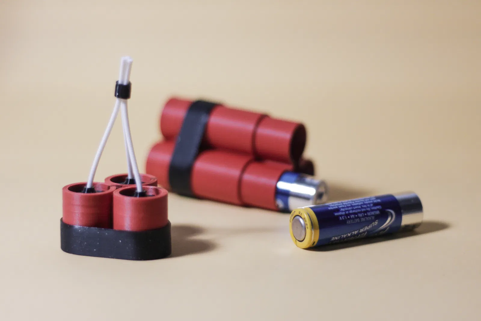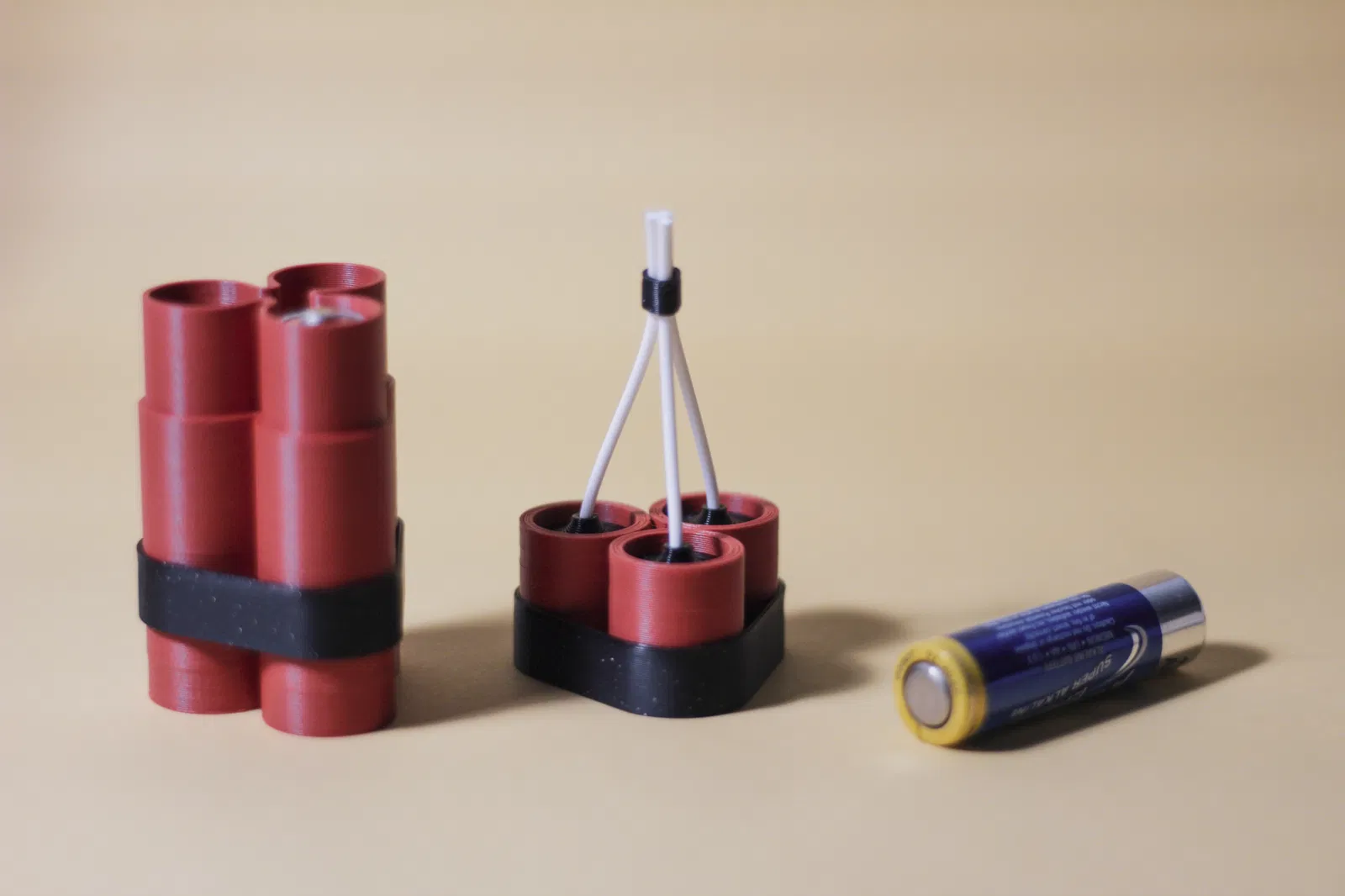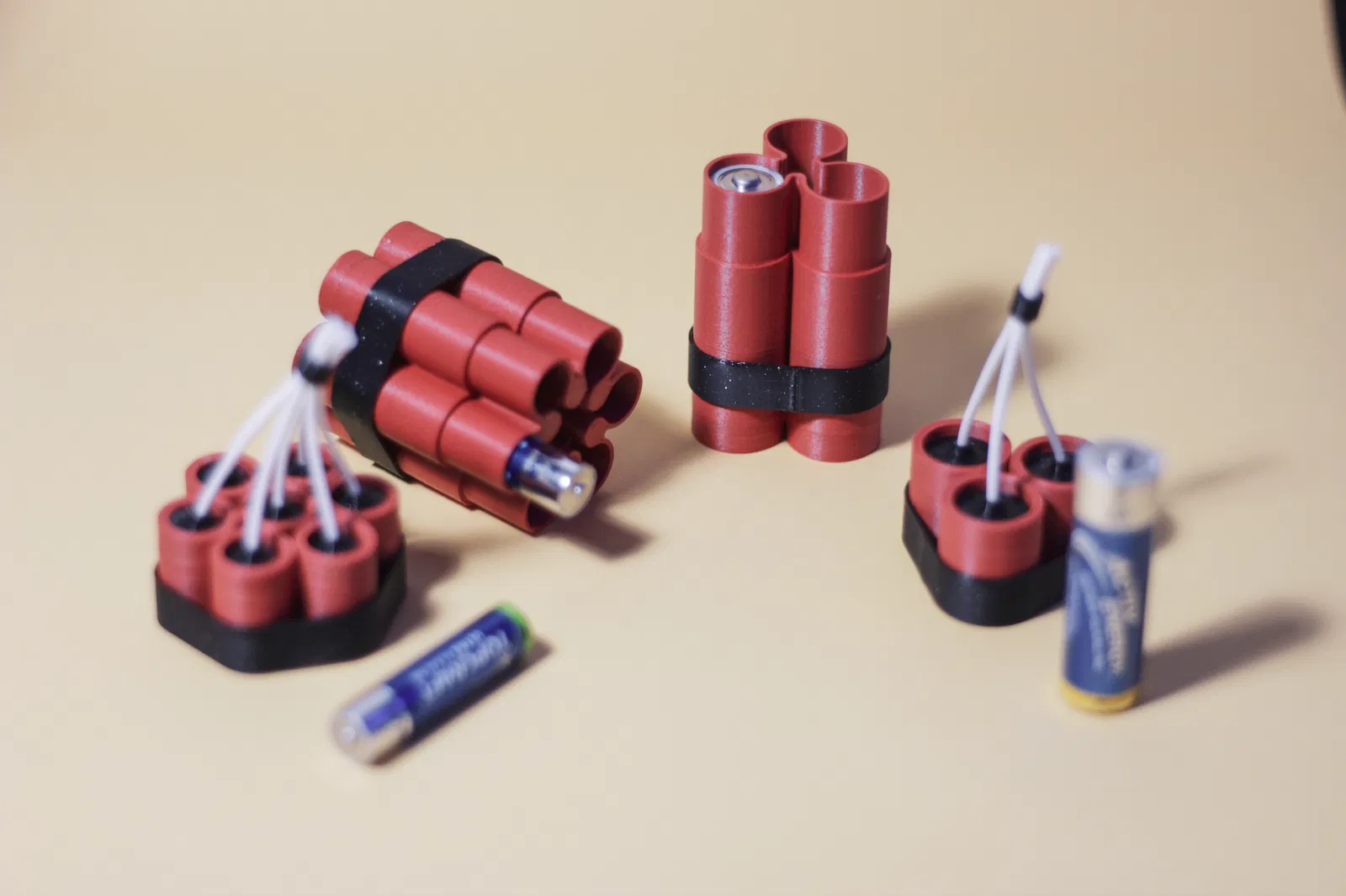 Hộp đựng pin TNT Dynamite hoạt hình cho pin AAA & AA với các thiết kế 3, 6 & 7 ngăn. Tên tệp theo định dạng NAME_X_M. Lắp ráp ngòi nổ dễ dàng bằng sợi nhựa 1.75mm. Đề xuất in với lớp 0.3mm, rộng 0.6mm để in nhanh và đẹp.