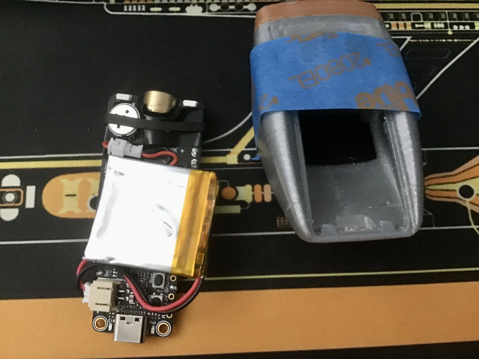 Mình cũng bỏ thêm vài cục tạ golf vô bên trong vỏ để tăng trọng lượng. Mình khuyên bạn nên đổ đầy một ít bên trong vỏ bằng sugru hoặc vật liệu tương tự để đảm bảo mấy nút cài đặt không làm lệch mạch khi nhấn.