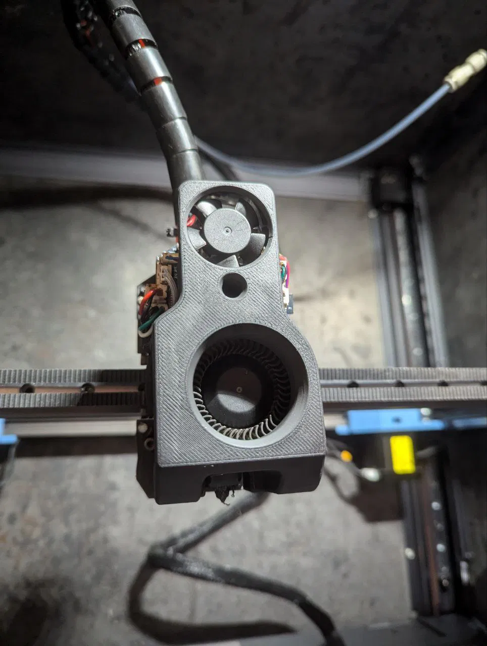 Cái V1 thì nó giống cái đế quạt Atomic hồi xưa, mà cái đó thì lại lấy cảm hứng từ Bambu với nó giống cái Sovol Shroud gốc. Cái này thì tạm ổn rồi, nhờ cái quạt 24V nó thổi ra khối lượng khí khổng lồ luôn