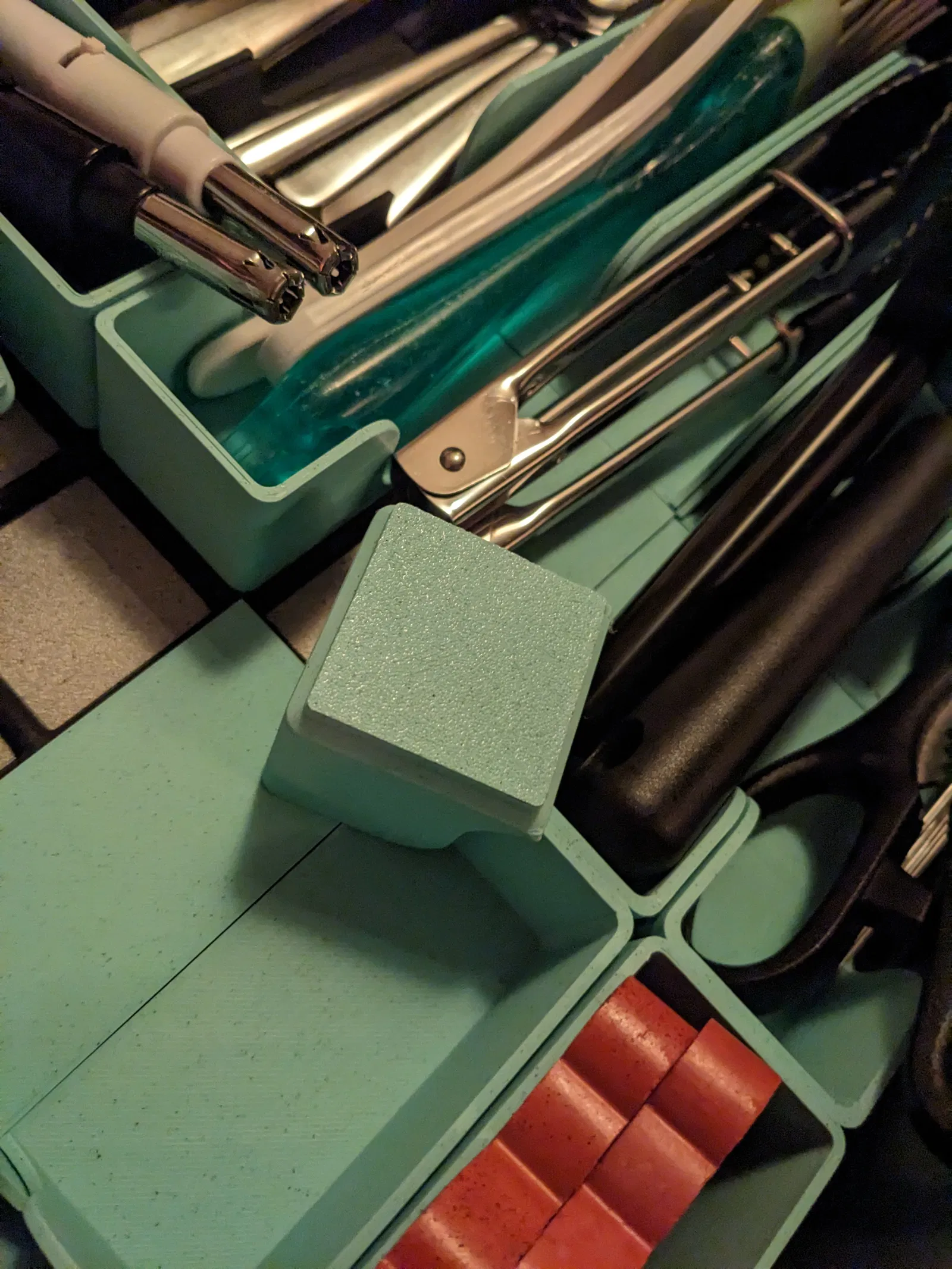 Bỏ lỗ nam châm trên phiên bản chiều cao giảm của bộ sưu tập gridfinity để in nhanh hơn. Tôi chỉ chỉnh sửa các nắp cuối (endcaps) vì đó là những cái tôi cần. Cũng thêm hai nắp cuối nữa (2x1 & 2x3). Các mẫu này là chỉnh sửa rất thô vì tôi thực sự chưa làm bao giờ, nhưng nó hoạt động với tôi! Ý tưởng từ một người dùng khác đã làm điều này cho các phiên bản chiều cao đầy đủ. Đế lót có sẵn trong bộ sưu tập của họ, xem: Ngoài ra, tôi cũng thêm một vài hộp đơn giản được tạo bằng plugin Fusion 360, tại sao không nhỉ. Chúng không có chiều cao bằng nắp cuối, vì tôi lười. Tôi khuyên bạn nên tự mình thử plugin gridfinity Fusion 360, nó thực sự dễ sử dụng, ngay cả đối với người mới bắt đầu (như tôi)!