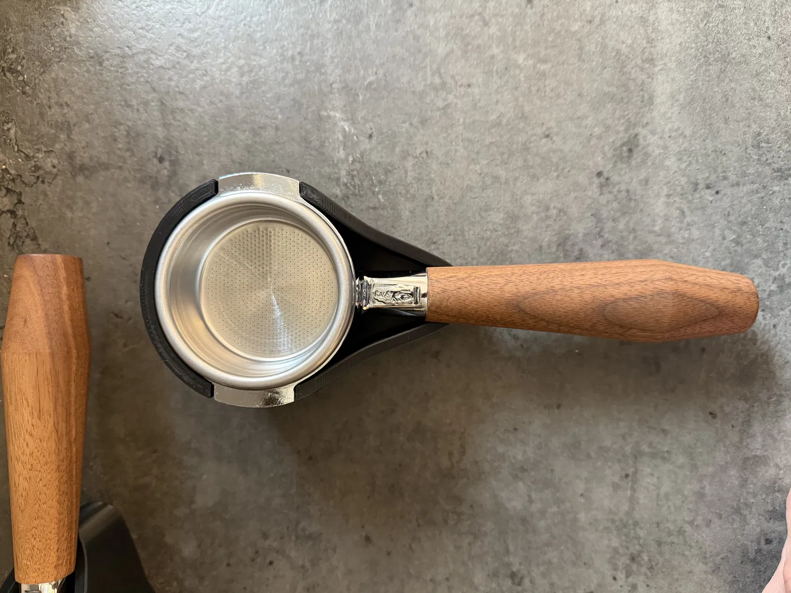 Một thiết kế khác cho tay cầm portafilter 58mm của La Marzocco. Giá đỡ này giúp nén cà phê dễ dàng hơn mà không cần đặt tay cầm lên mặt bàn. Nó có thể tương thích với các loại tay cầm lọc khác.