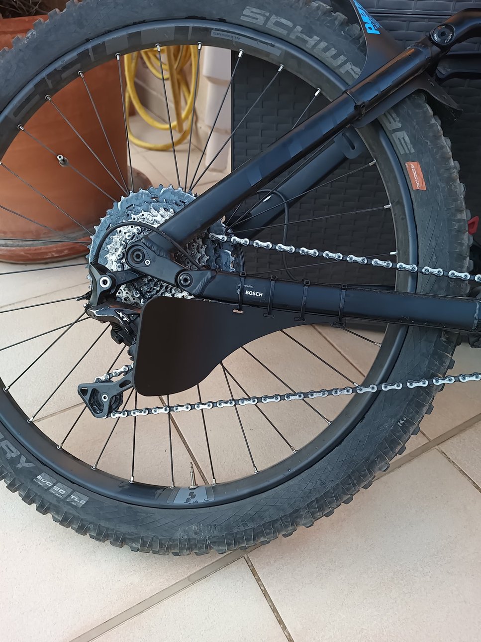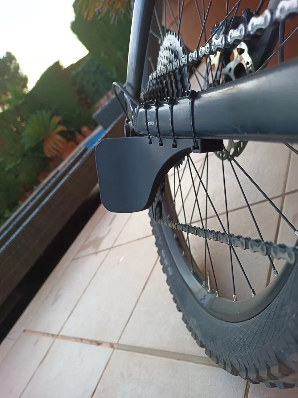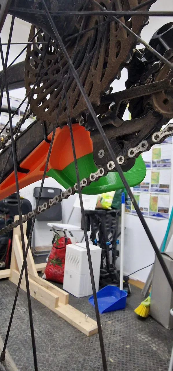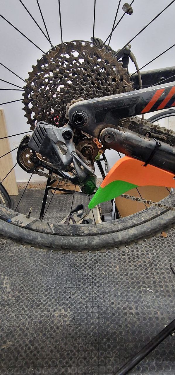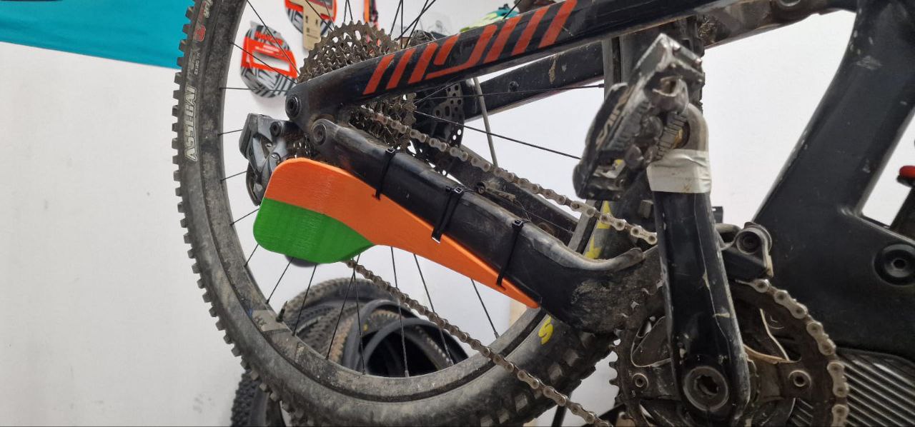 - Đây là một cái ốp/tấm chắn để bảo vệ bộ đề của xe đạp địa hình, nó dùng 3 dây rút và 3M băng dính hai mặt để cố định vào gắp sau.