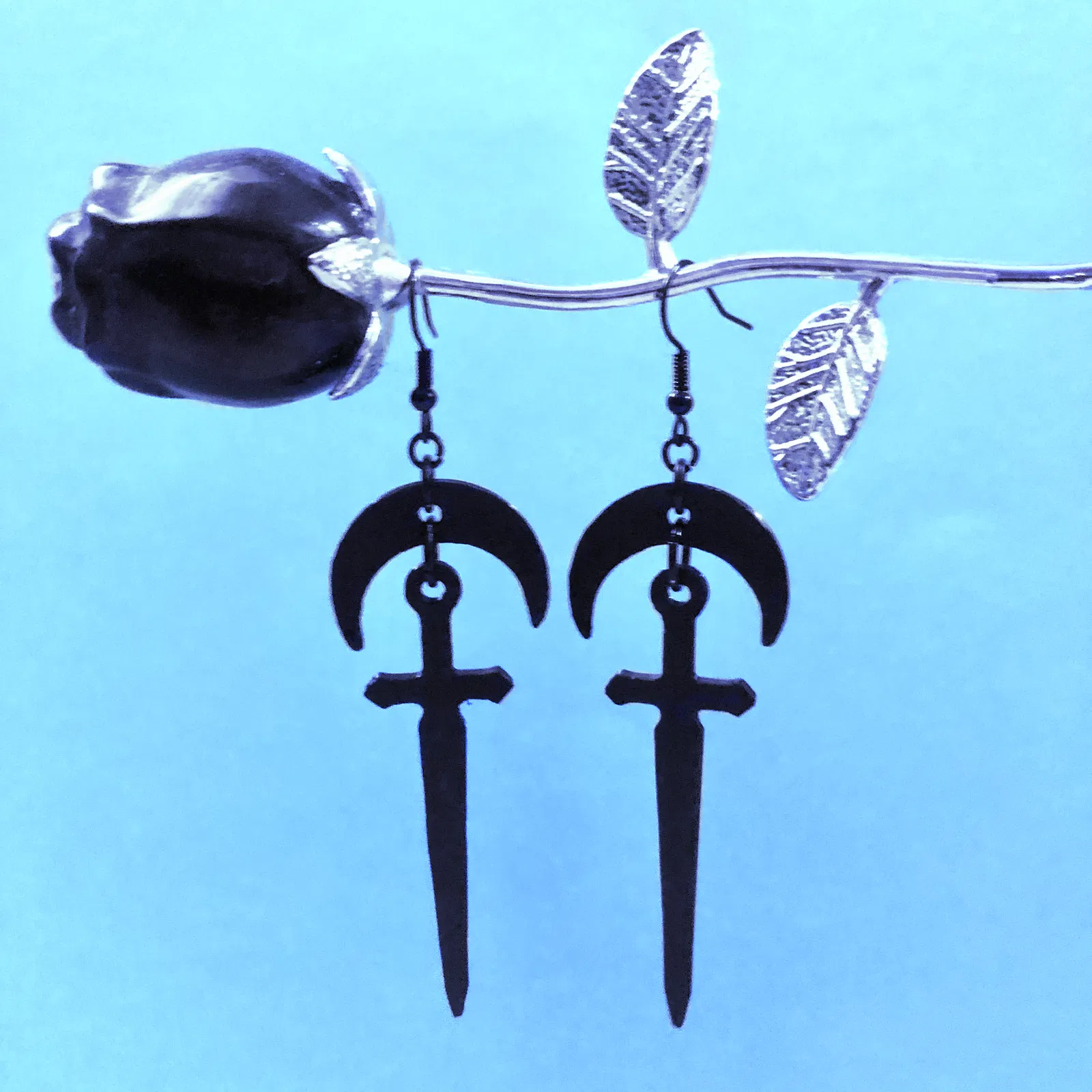Mô hình 3D kiếm làm bông tai hoặc móc khóa xịn sò! Nhỏ gọn nhẹ tênh, đeo không sợ mỏi đâu nha. Có 2 mẫu cho mấy bà lựa nè, một mẫu trơn, còn một mẫu có thêm trăng lưỡi liềm lơ lửng phía trên.
