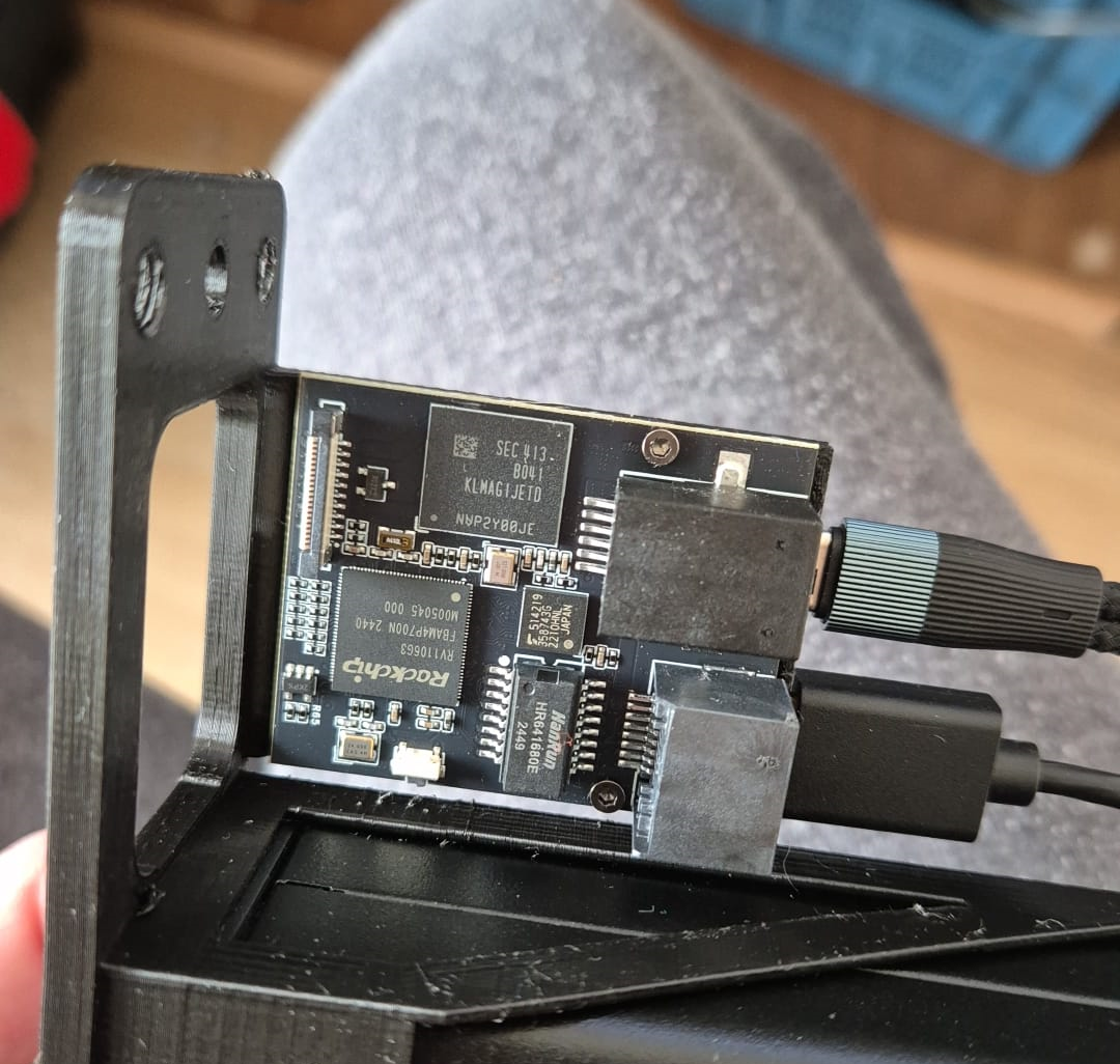 Mình cần tháo JetKVM ra để vừa, nhưng ốc của vỏ có thể tái sử dụng trong bản in này. màn hình bật ra dễ dàng. Và cái duy nhất nên thay đổi là cắt băng keo để cáp ruy băng có thể gập xuống một chút.