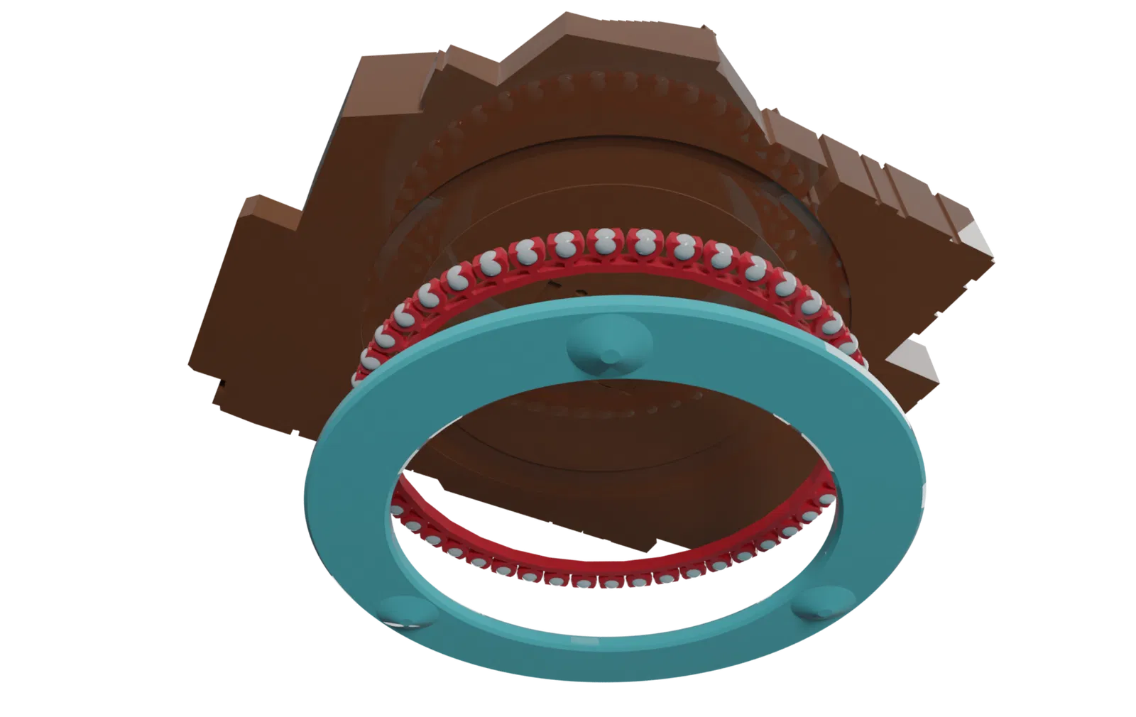 Tôi đã in phần đế và phần chính bằng sợi PLA woodfill của Colorfabb với đầu phun 0.6mm. Tôi nghĩ cách này làm khá tốt, nhưng các rãnh ổ bi khi in ra hơi nhám và cần xử lý hậu kỳ một chút. Bạn chỉ cần hỗ trợ bên trong các rãnh ổ bi. Tôi đã đặt hỗ trợ dạng sơn (paint-on supports) trong file 3mf. Phần ban công bên ngoài khu palace phía trên shadows in ra tốt mà không cần hỗ trợ. Phần vòng giữ (retention ring) cần (48) viên bi 6mm và có thể in bằng PLA thường với chiều cao lớp 0.15 mà không gặp vấn đề gì.