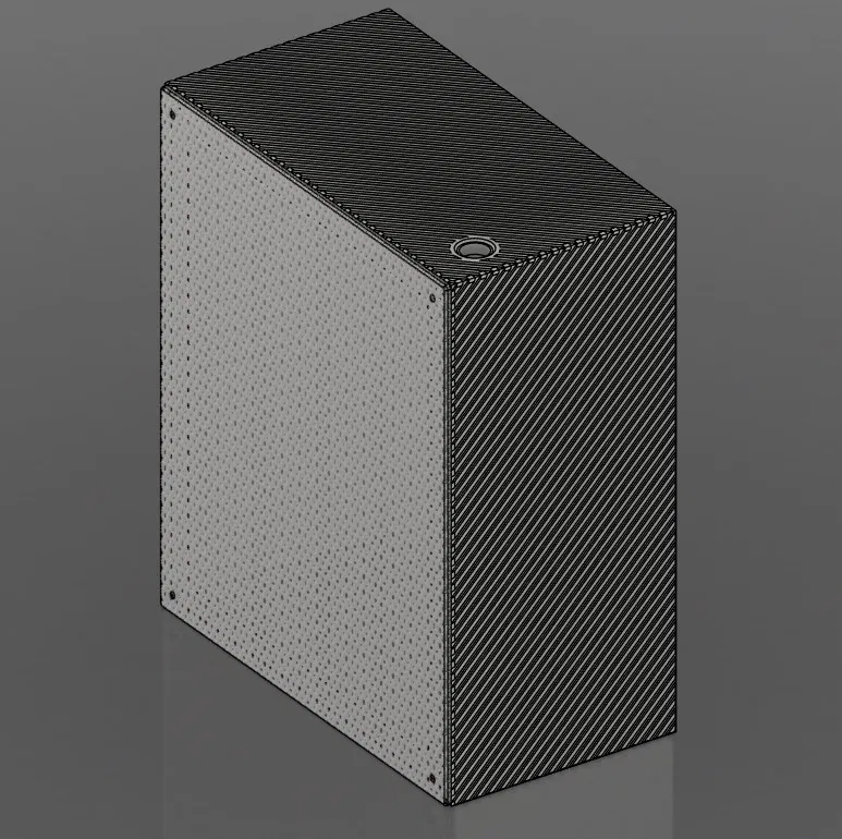 Vỏ case SFFPC spiggytech 4.9L, kích thước 4.9L, hỗ trợ main ITX, tản nhiệt 39mm, GPU 180mm max, nguồn FlexATX. Khuyến khích dùng PETG+, ASA/ABS. Đã hoàn thiện nhiều tính năng như tay cầm, khe SSD, điểm gắn dây rút.