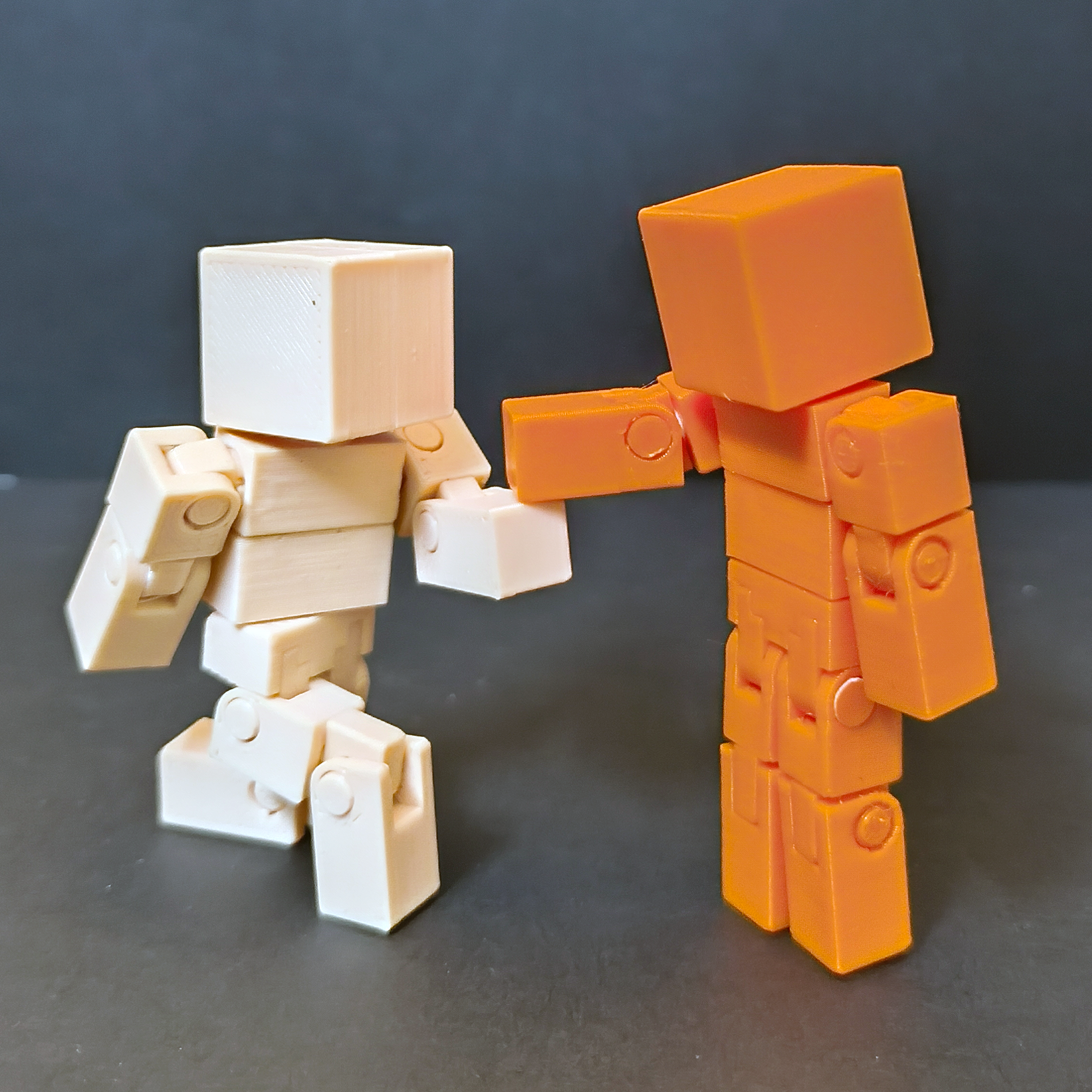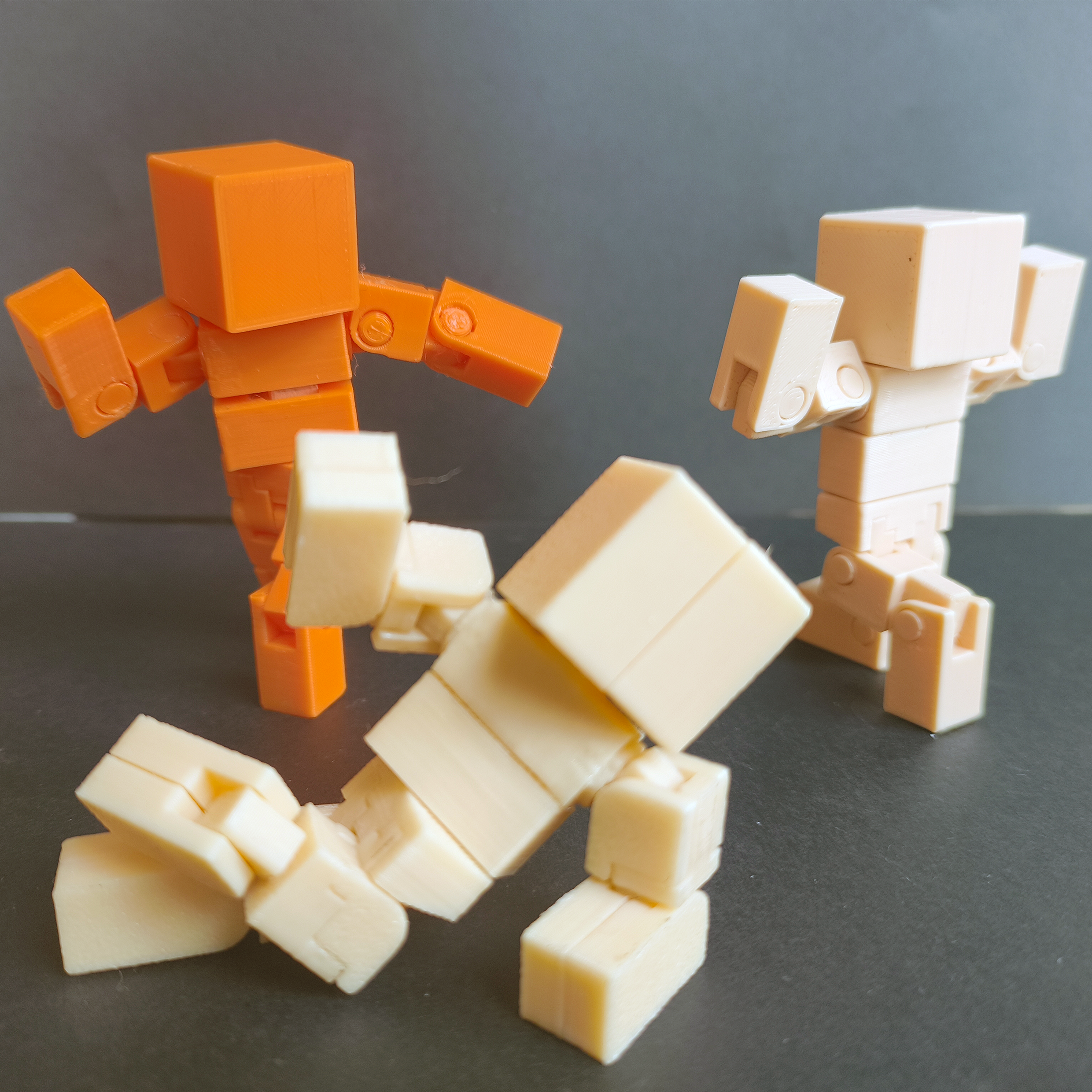 Chúng có thể tạo dáng! Chúng có thể xoay đùi! Chúng có thể gập bụng! Tất cả chỉ với chiều cao vỏn vẹn 7cm! Chúng là _hồi hộp chờ đợi_ VoxelMan! Ít hướng đến trẻ em hơn, mà hướng tới người lớn tuổi thích những mô hình siêu cử động. Mô hình vẫn còn thiếu các chuyển động quan trọng, nhưng mình đã làm lại đường nét và cho nó mọi loại khớp nối phù hợp với khung nhỏ này. Khuyến khích bôi một lớp băng keo mỏng lên các chốt để khớp ôm sát và bền hơn vì mình cố tình làm khớp nối lỏng hơn sau phản hồi về V1. Chúc mọi người chơi vui vẻ!