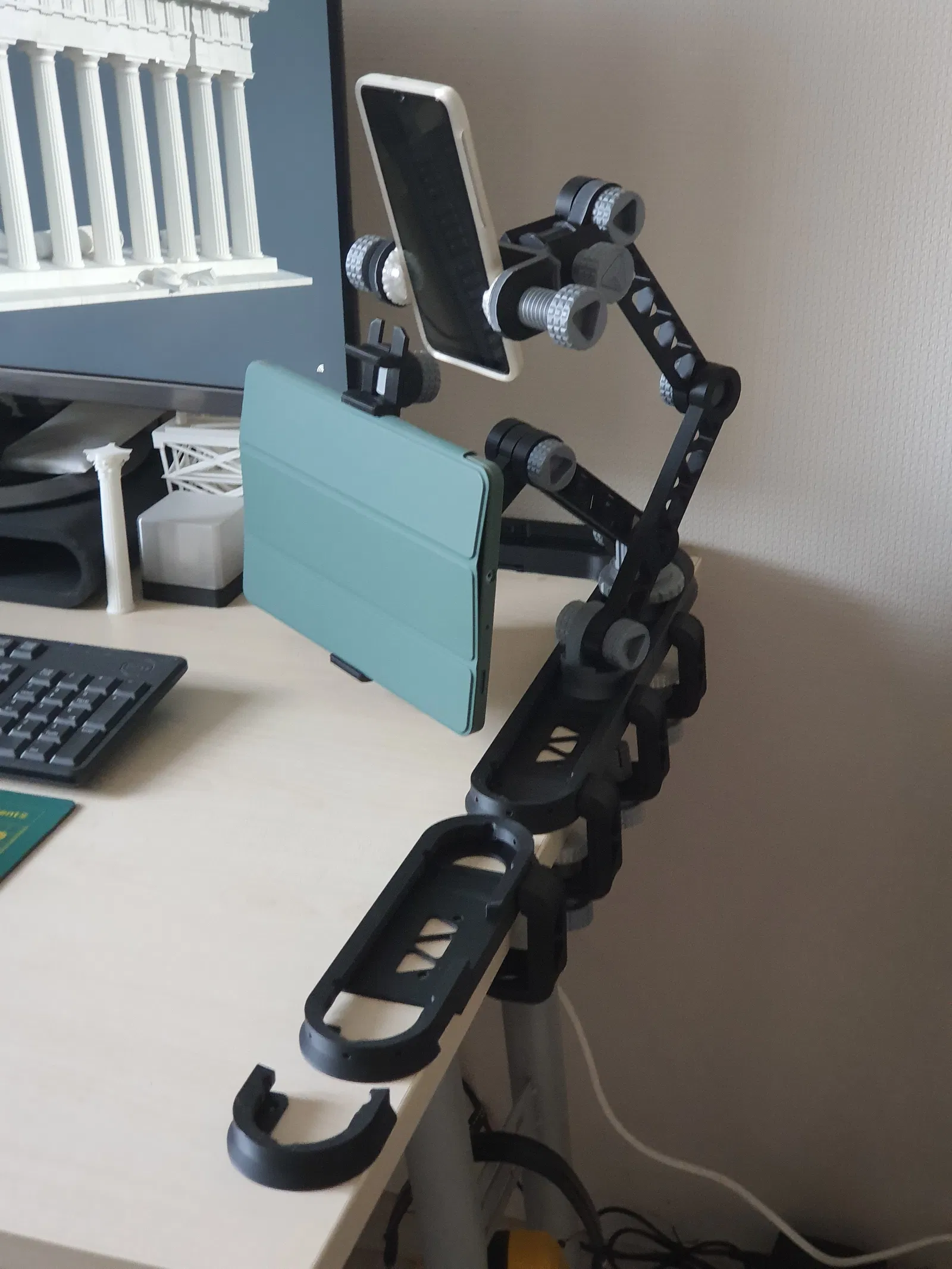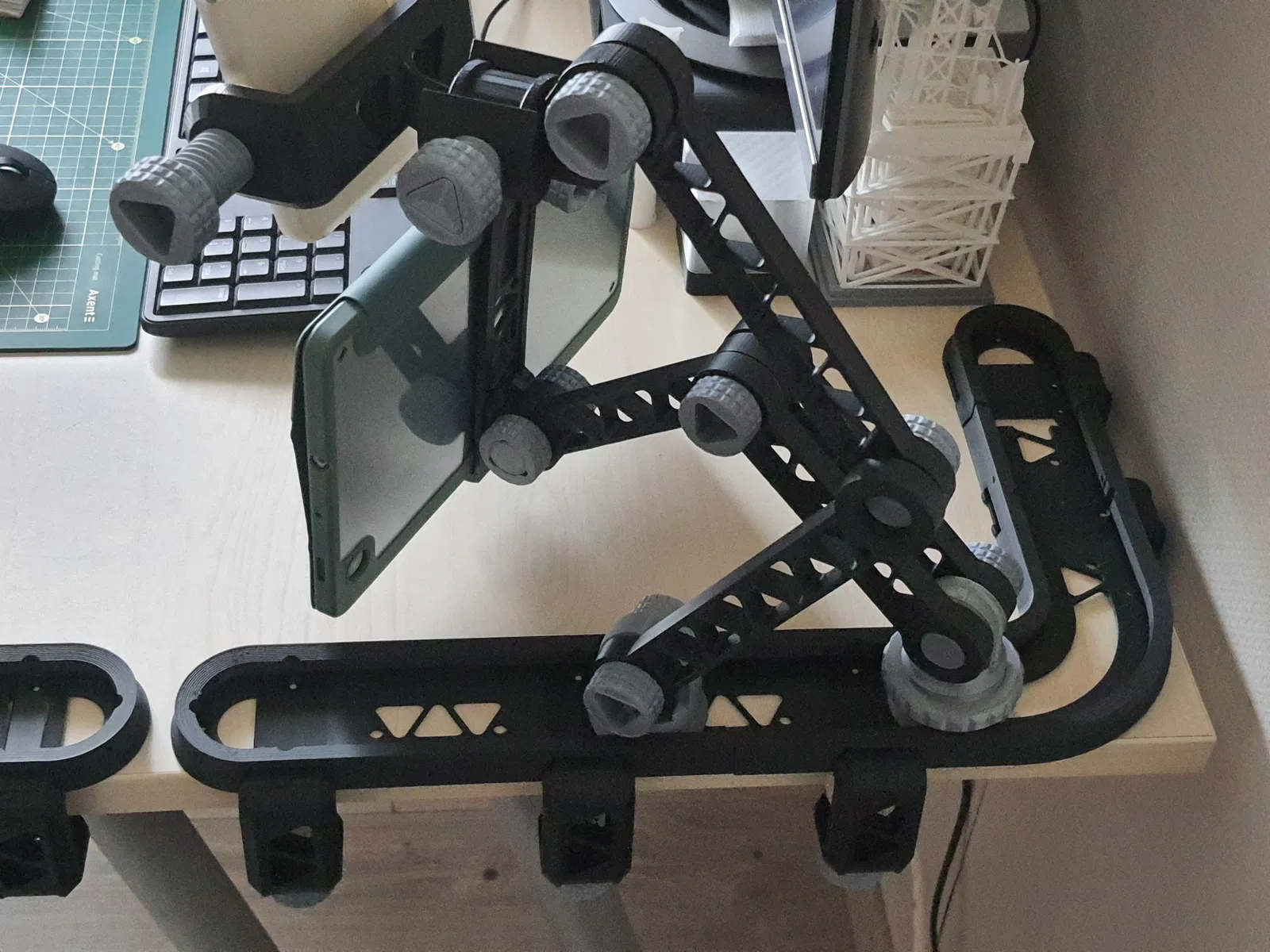 Hệ thống ray tay cơ khí in 3D. Tương thích với các mẫu Tay cơ khí khác. Mang đến khả năng di chuyển và điều chỉnh vị trí của các giá đỡ điện thoại, máy tính bảng và các thiết bị tương thích khác dọc theo cạnh bàn. Hệ thống gia cố để gắn vào bàn. Có thể sử dụng vít tự khai thác và vít kim loại. Lấy cảm hứng từ @FukyArt và mẫu của anh ấy /3d-model/122155-canh-tay-dien-thoai-deo-chac-chan-in-100 Thêm ốc vít và đai ốc tại đây: Giá đỡ điện thoại Mech Arm treo tường Một bản phối lại khác: Chân máy Mech Arm
