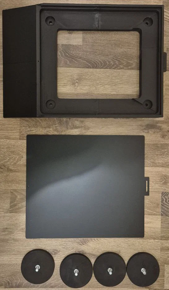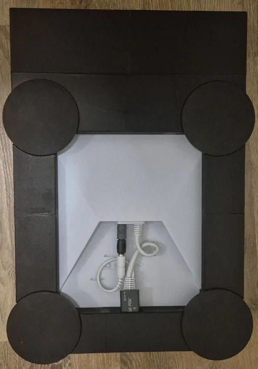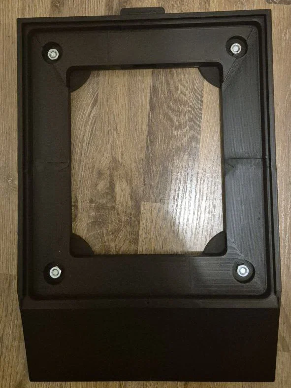 Đế gắn phẳng này đã chuẩn bị sẵn để gắn nam châm đường kính tới 88mm/m8 hoặc thanh ren M8. Có khe luồn dây cáp hoặc gắn POE Mikrotik phía sau. Toàn bộ Starlink được phủ mica 3mm và cố định bằng vít hoặc khóa in. Có file cắt laser mica cho V4.