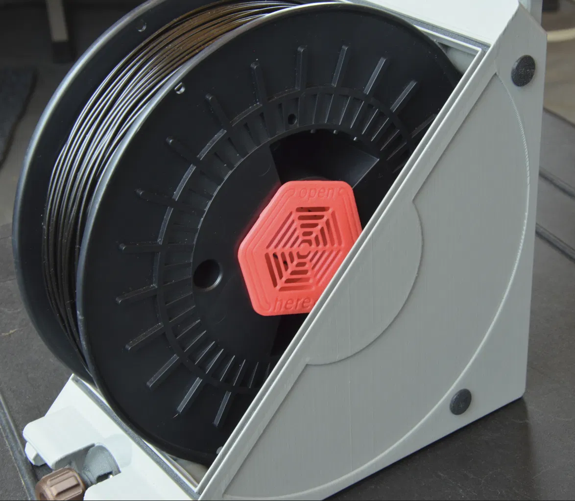 Vừa cho các cuộn spool rộng 55mm và 80mm với trục đường kính 50mm, về cơ bản là mọi loại spool phổ biến như prusament. Hộp này tối đa hóa dung tích silica gel, có nắp nhỏ gọn và có thể in với cài đặt thô.