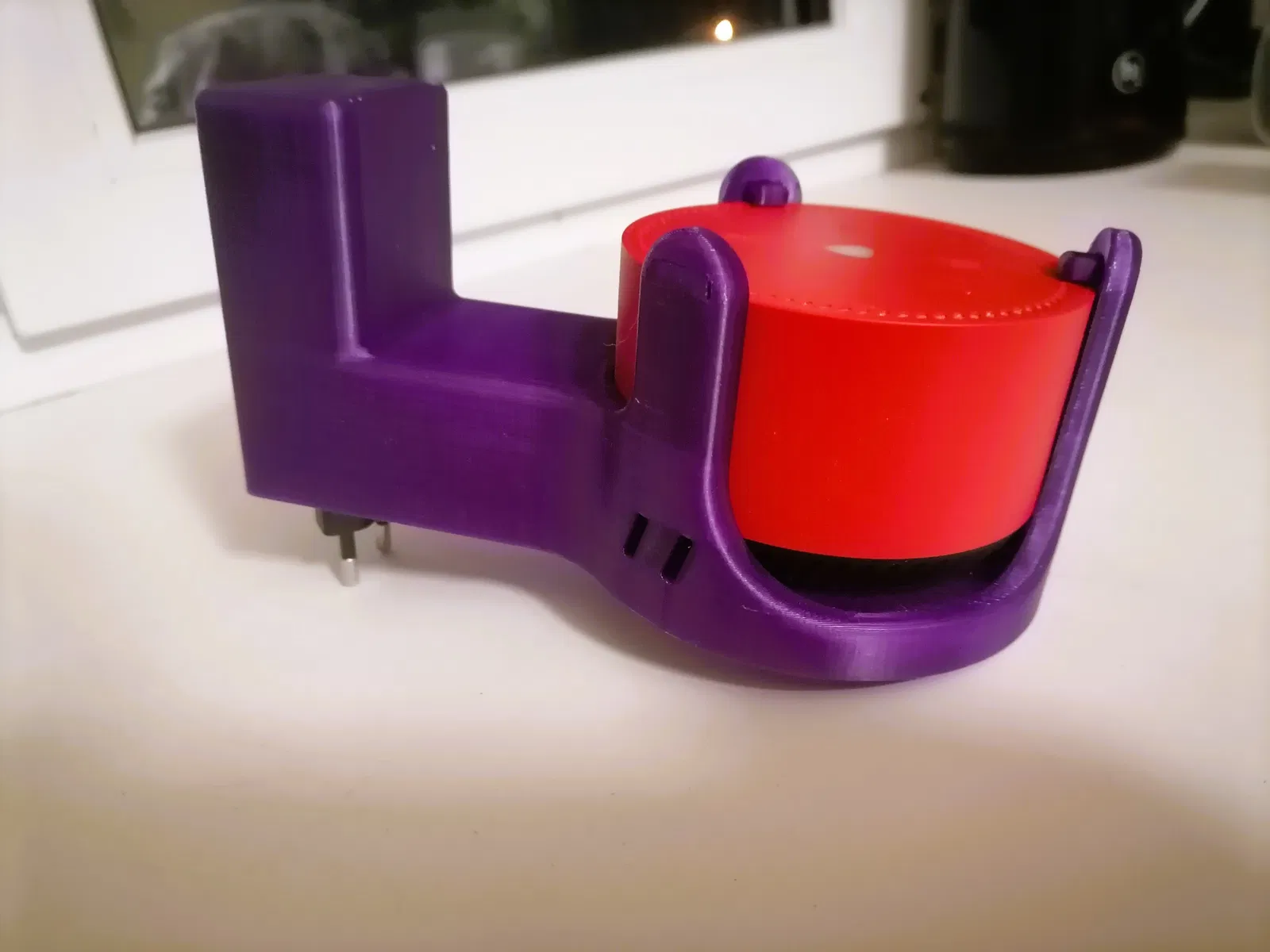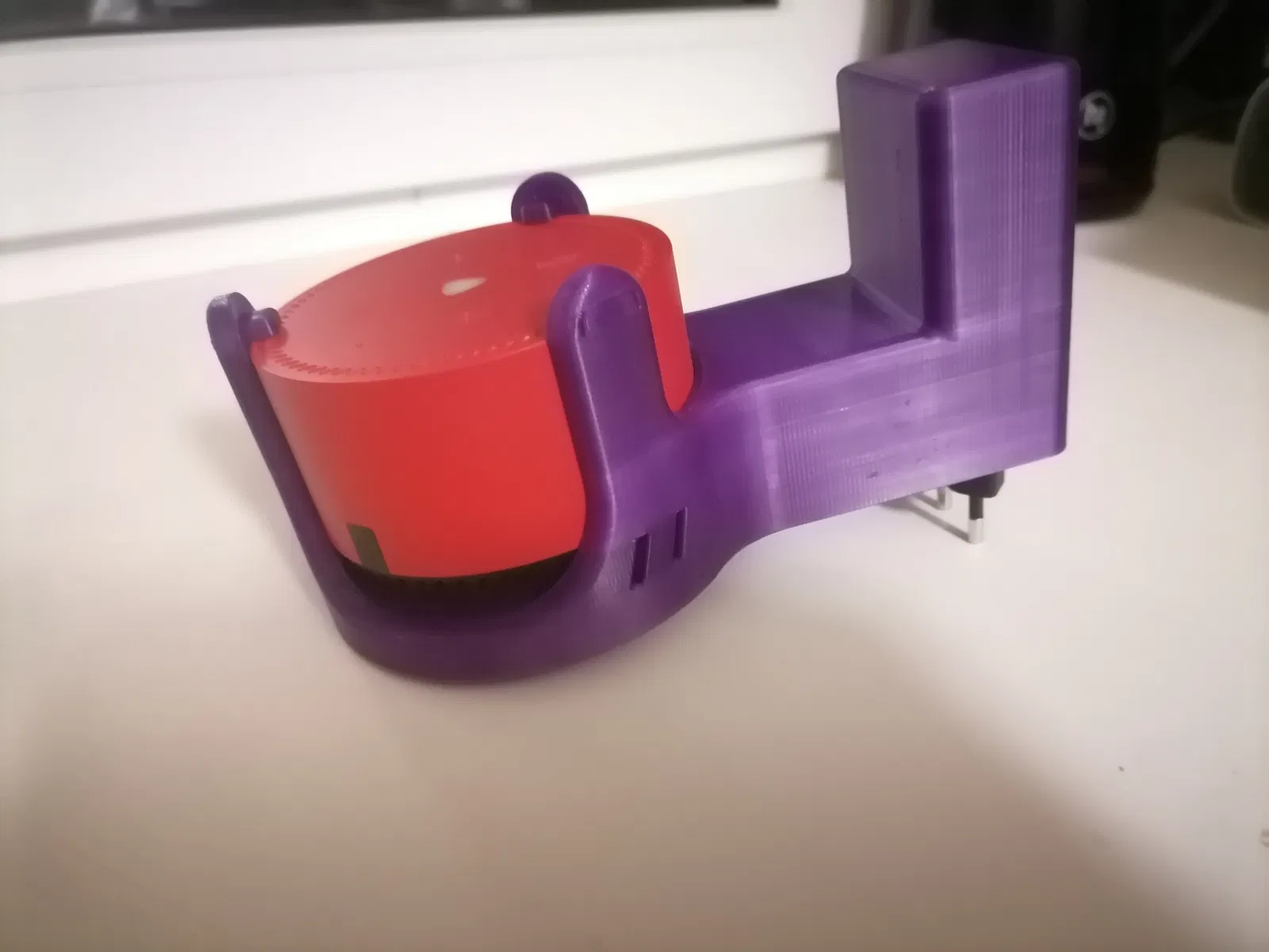 Giá đỡ cắm ổ điện, có chỗ để bộ nguồn và quấn dây, dành cho loa Alice (Yandex Station Lite). Sản phẩm gồm 3 phần, thân và đáy có thể dán bằng keo, tai giữ loa thì tháo rời.