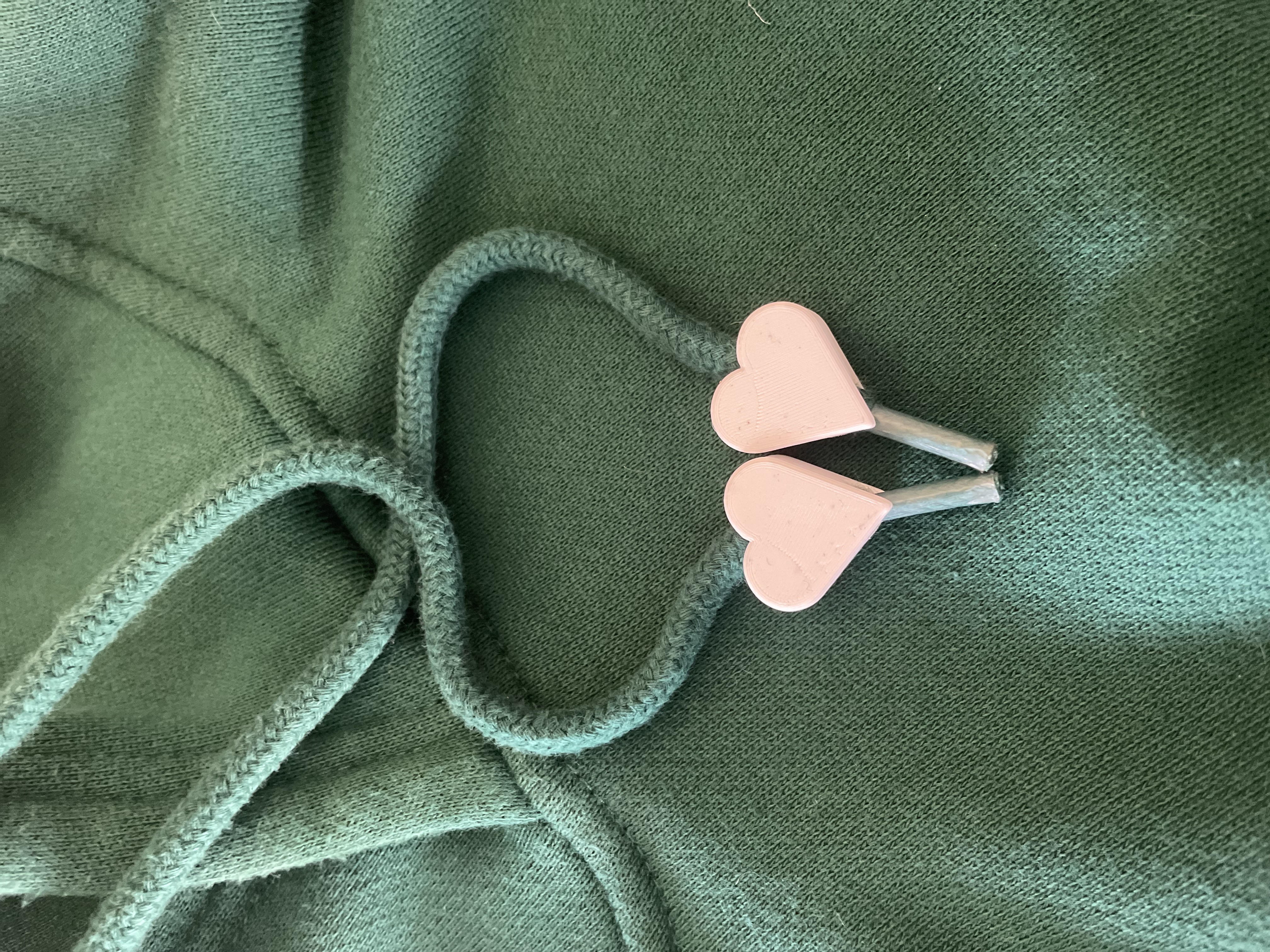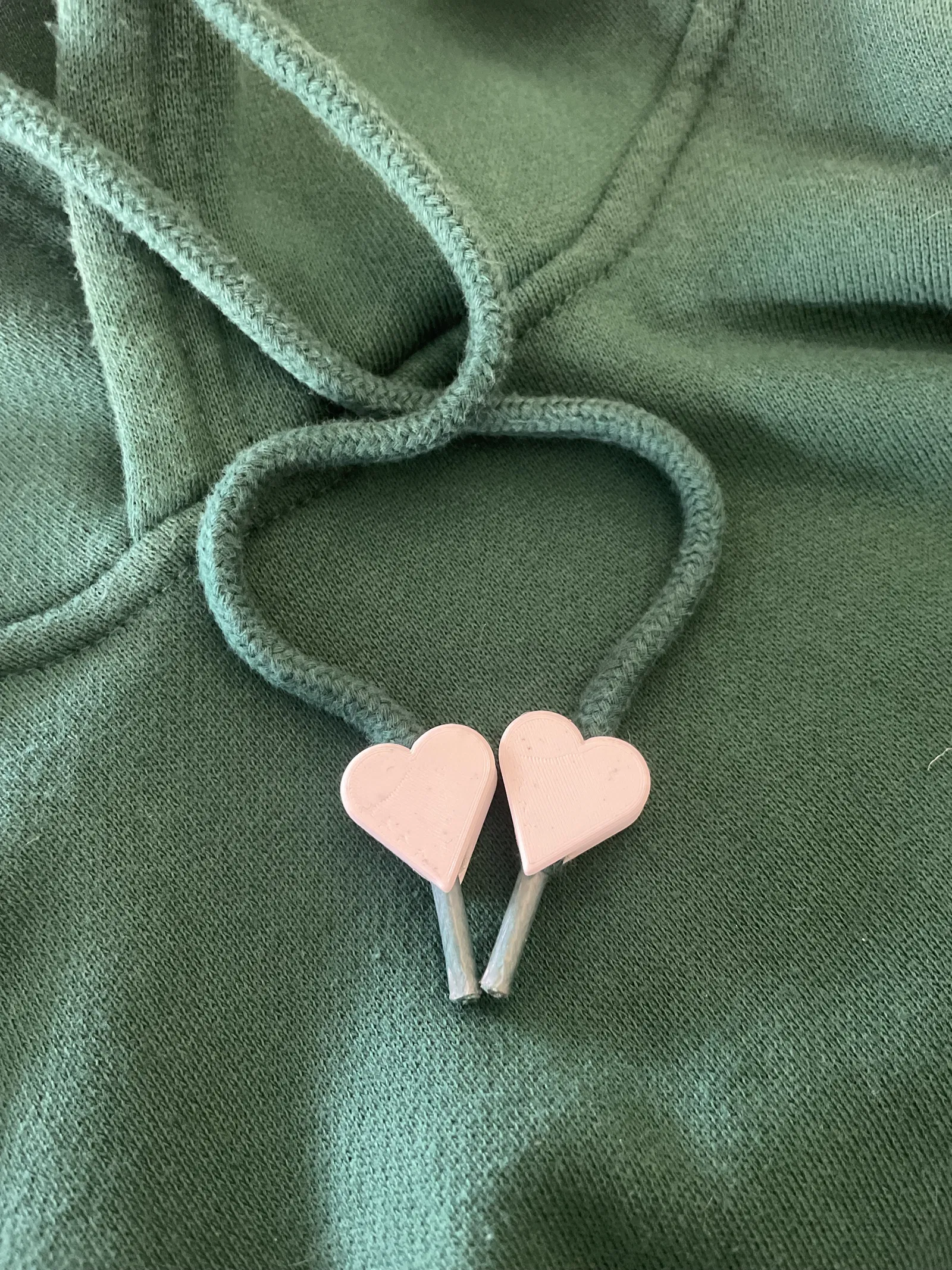 Cho chiếc áo hoodie của bạn một phụ kiện xinh xắn với dây rút hình trái tim độc đáo. Dễ dàng in 3D và làm bừng sáng trang phục của bạn mà không cần keo dán. In bằng PLA trắng.