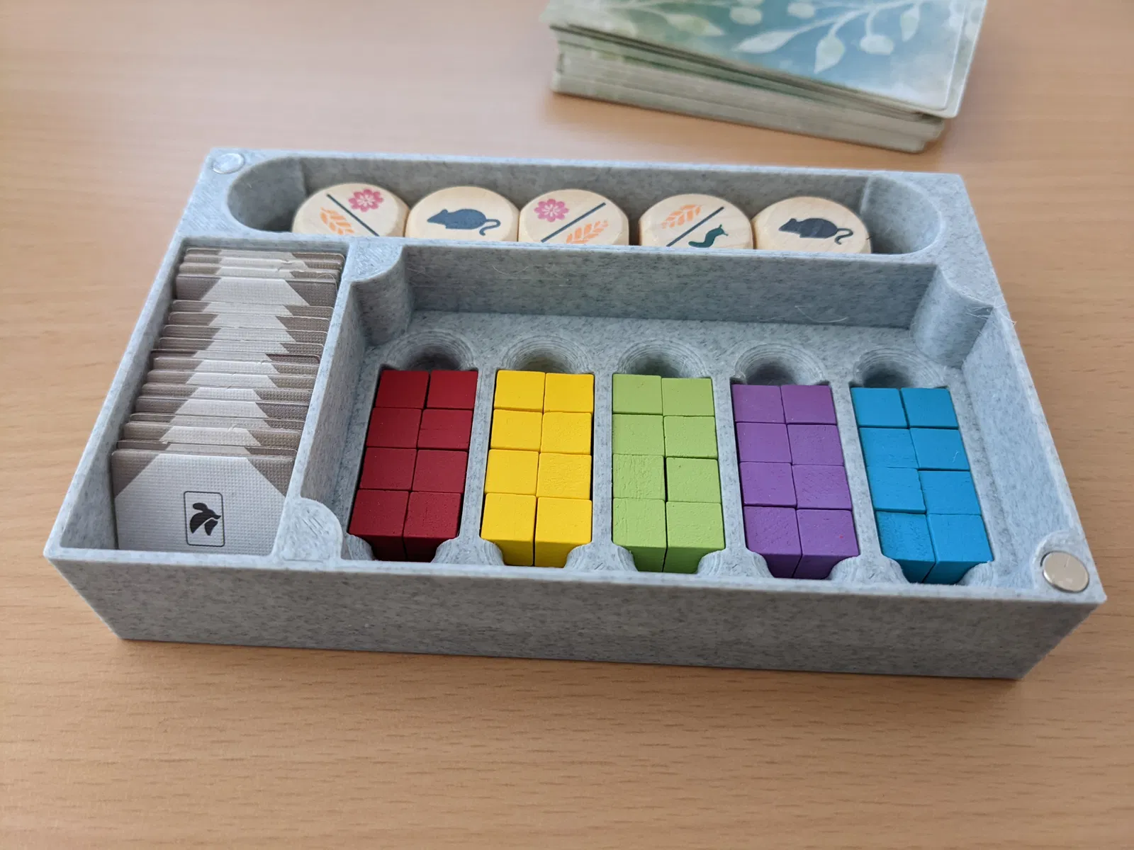 Hộp đựng nam châm tiện lợi cho Wingspan, gom gọn xúc xắc, thẻ thưởng, khối hành động và ô mục tiêu của bản Châu Âu & Châu Đại Dương. Thiết kế nhỏ gọn, sử dụng nam châm 6x3mm. Lưu ý, thẻ có bọc bài có thể không vừa. Hướng dẫn in chi tiết kèm hỗ trợ cho các tùy chỉnh tương lai.