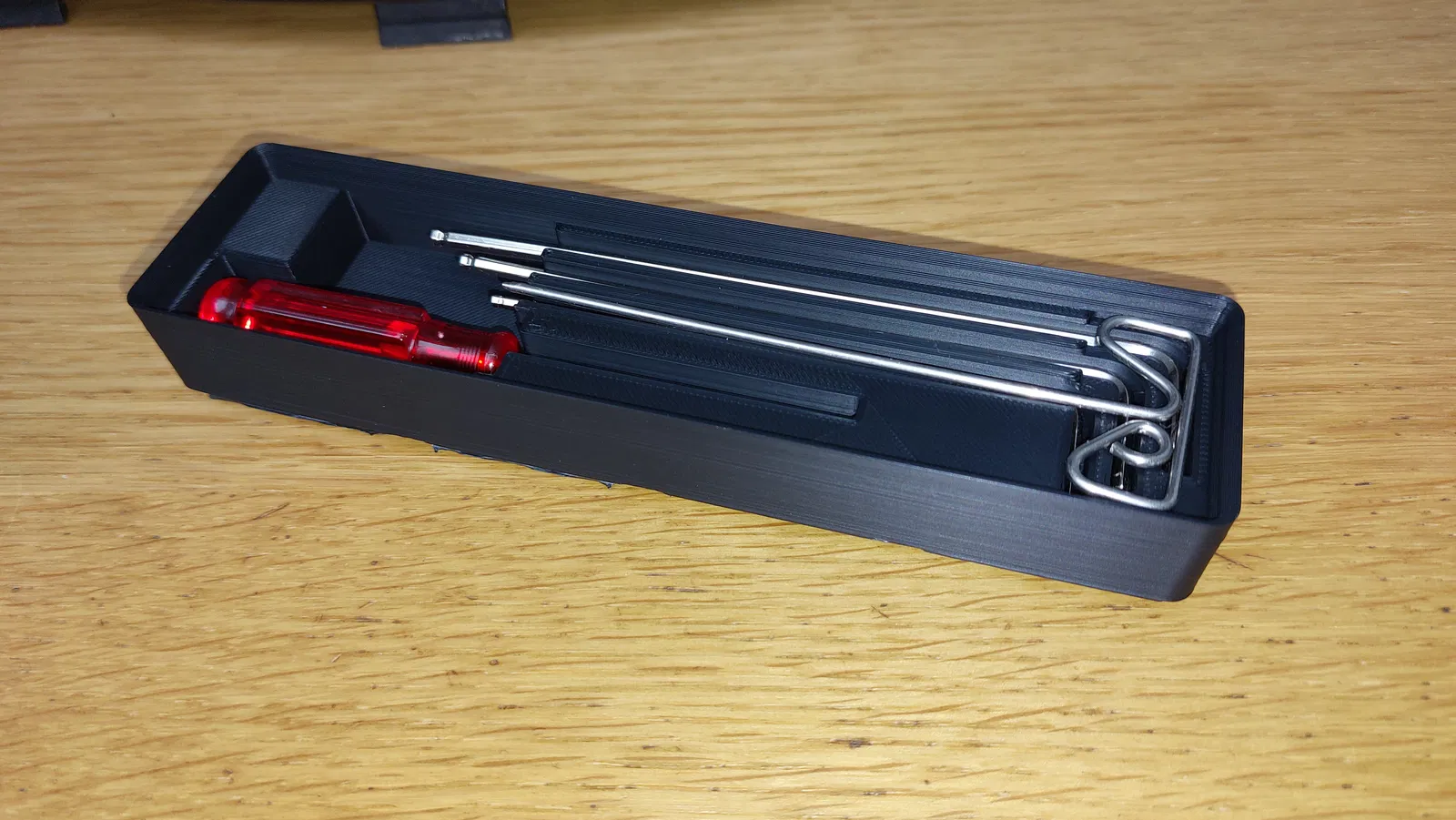 Một hộp đựng dụng cụ Gridfinity tiết kiệm diện tích, chuyên cho mấy món bảo trì ít dùng của Flashforge Adventurer 5M như tua vít, khóa lục giác, que thông đầu phun. Hộp thiết kế nhỏ gọn, tối ưu không gian lưu trữ.
