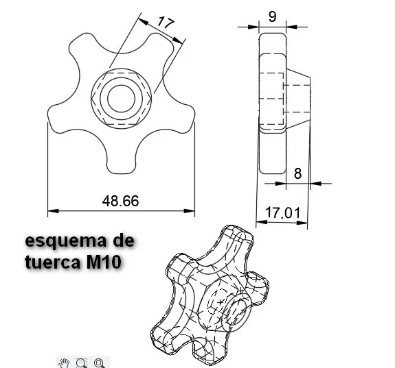 Đây là một cái núm hoặc cánh bướm cho đai ốc ren metric 10mm và một cái khác cho ren metric 8.