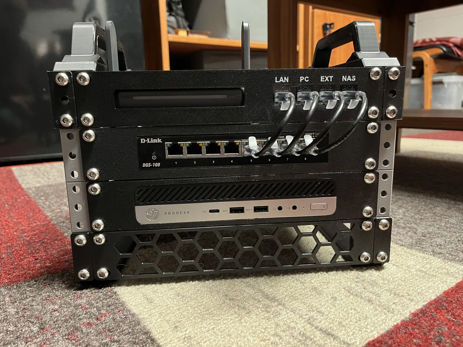 Đây là chiếc rack module tùy chỉnh của tôi, làm cho Homelab 10" của mình. Bạn có thể đọc thêm về nó tại đây: https://www.reddit.com/r/homelab/comments/1idbyfn/my_new_mini_rack/