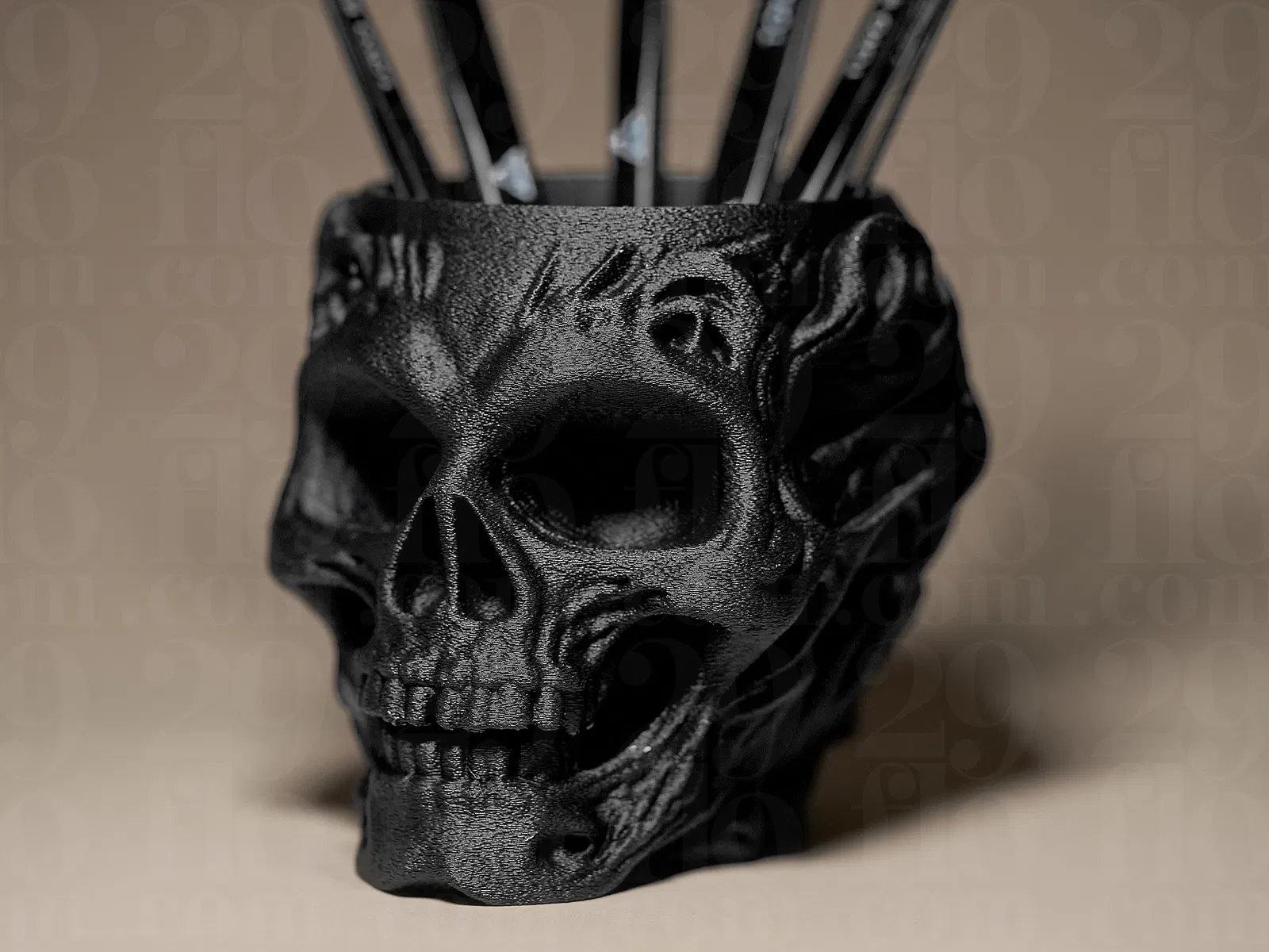 Cái này là cái để đồ hình cái đầu lâu nè, có khoét rỗng ở trong, để mấy món đồ nhỏ, viết chì, viết, hay đồ linh tinh gì cũng được hết trơn. Bạn in phóng to thu nhỏ tùy ý nha. Đo rồi chỉnh kích cỡ, rồi in. In với hiệu ứng Fuzzy Skin nè.
