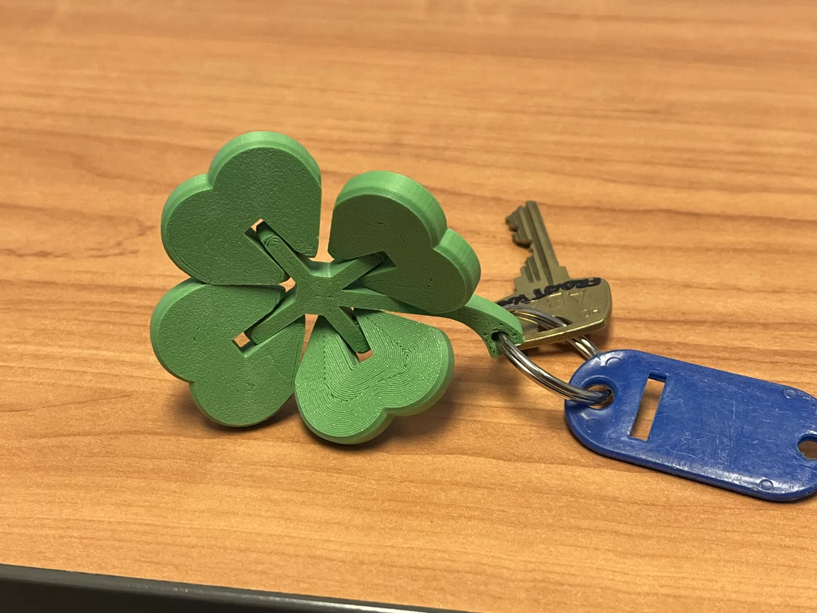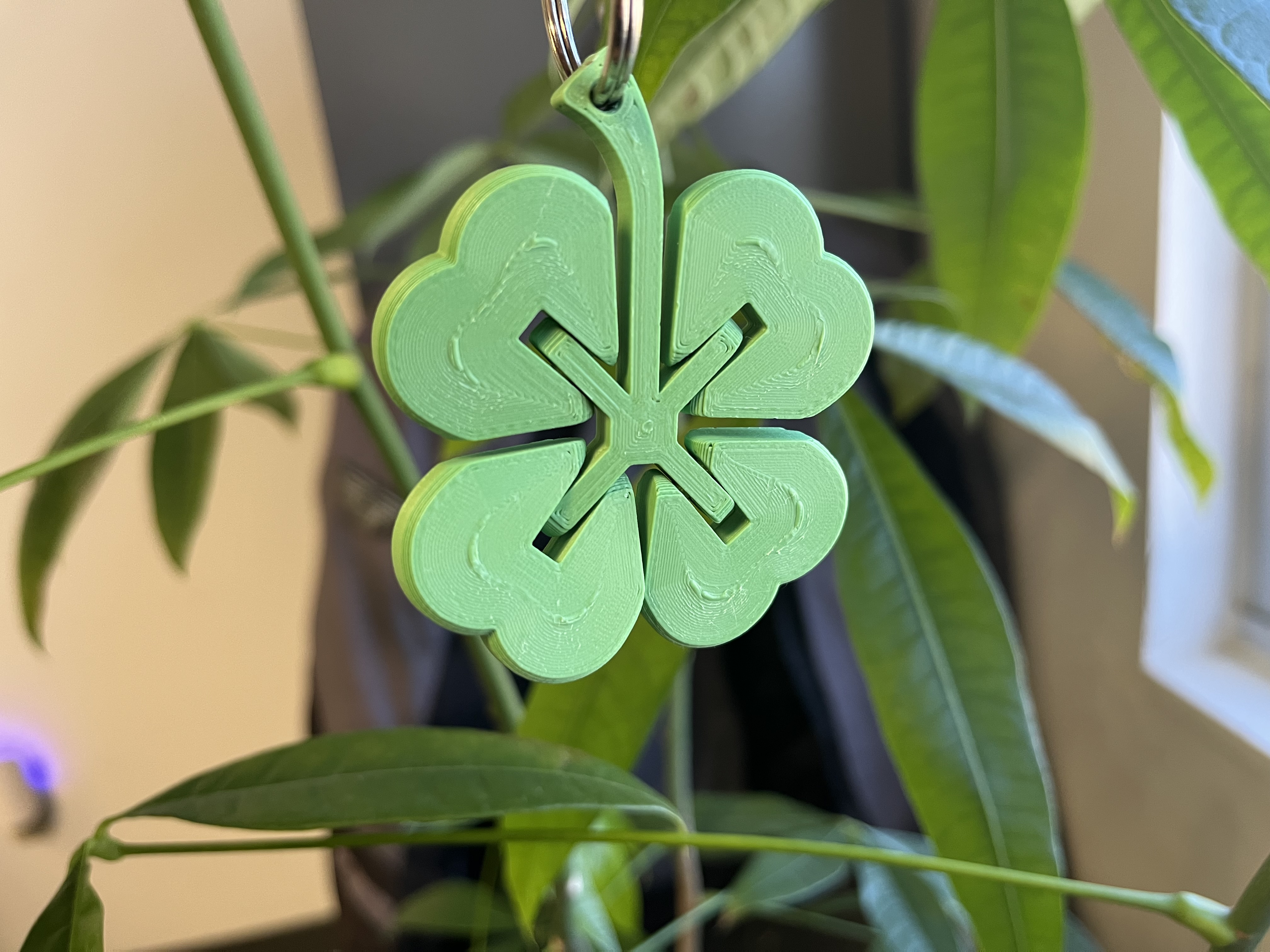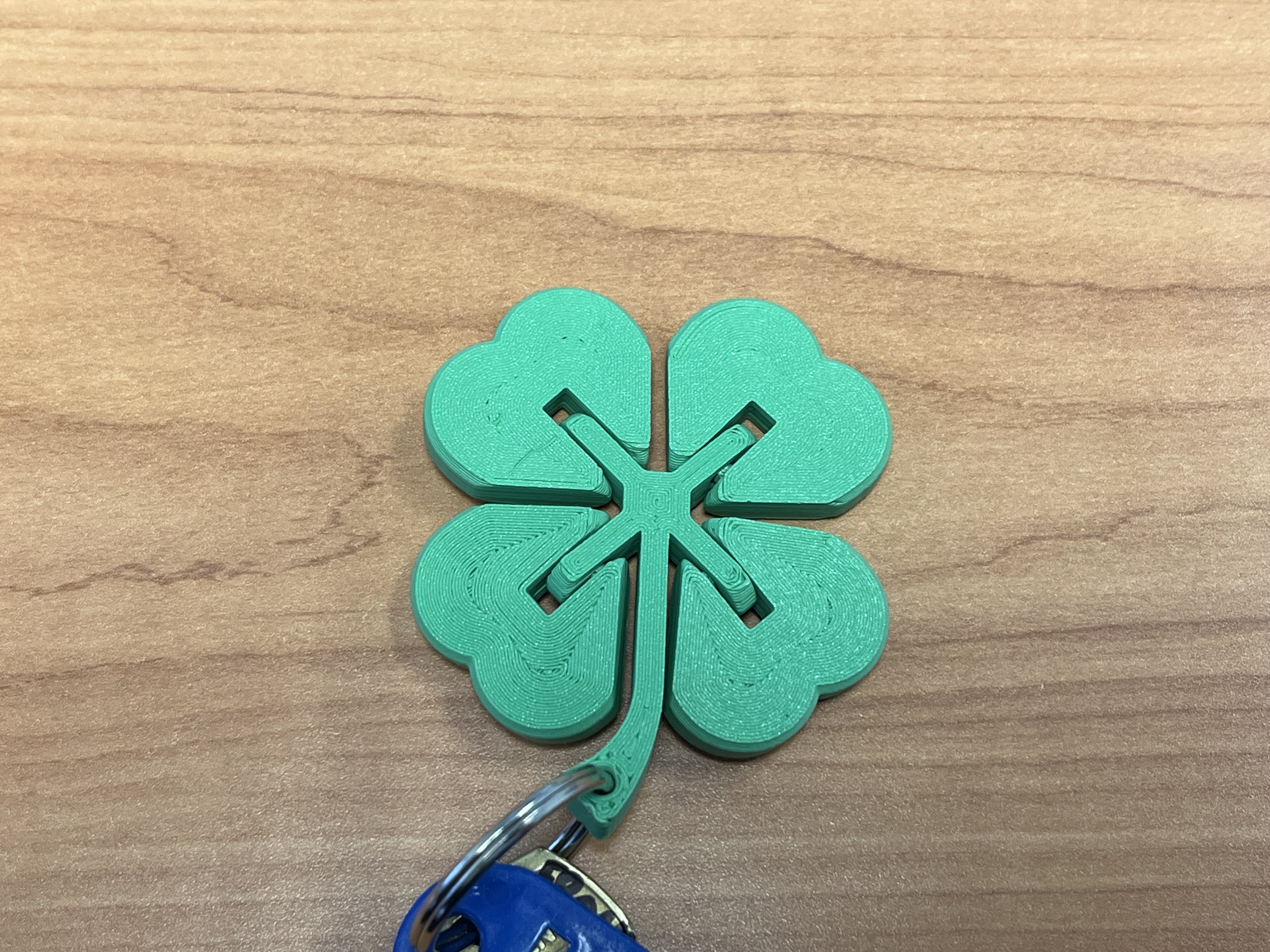Móc khóa cỏ 4 lá khớp dẻo đơn giản, in ra là vui liền cho Lễ Thánh Patrick! Có hai phiên bản: tiêu chuẩn (0.5mm) và khít chặt hơn (0.25mm) để tránh bị lỏng. KHÔNG dùng support khi in.