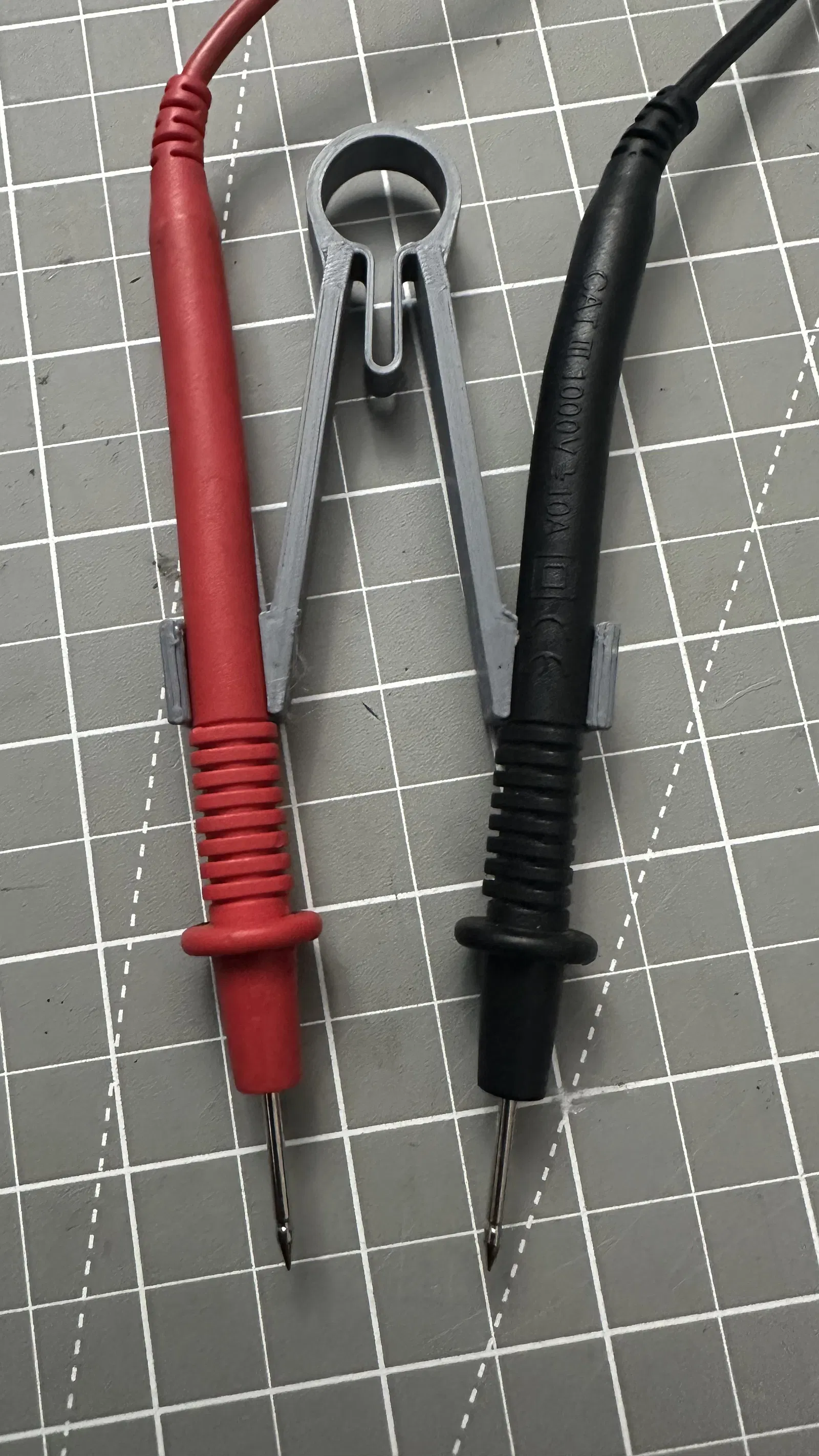 Phụ kiện tuyệt vời cho bàn làm việc của bạn giúp việc đo đạc trở nên dễ dàng! Nhíp được gia cố để giữ que đo Multimeter của bạn. In bằng PLA hoặc PETG.