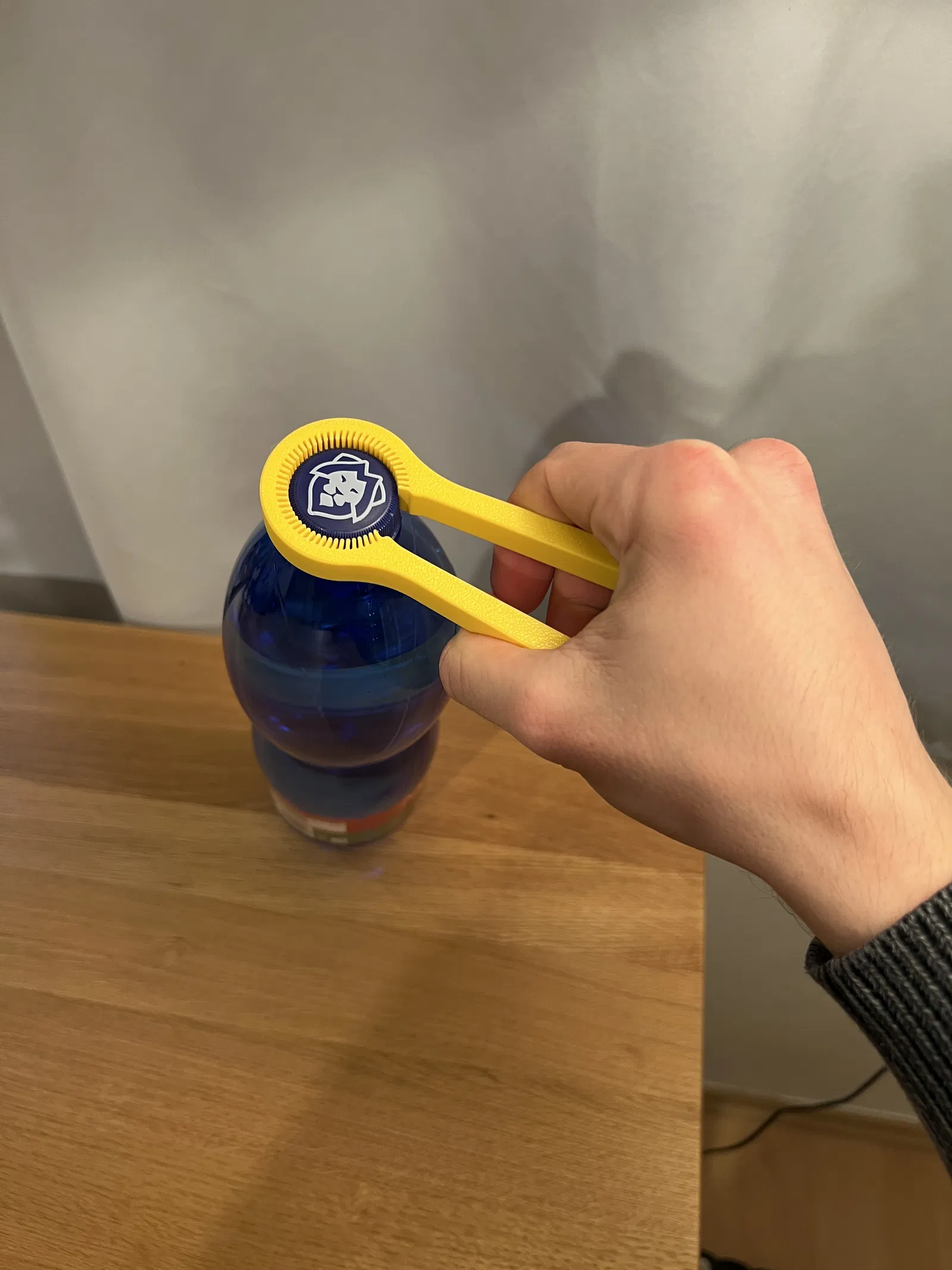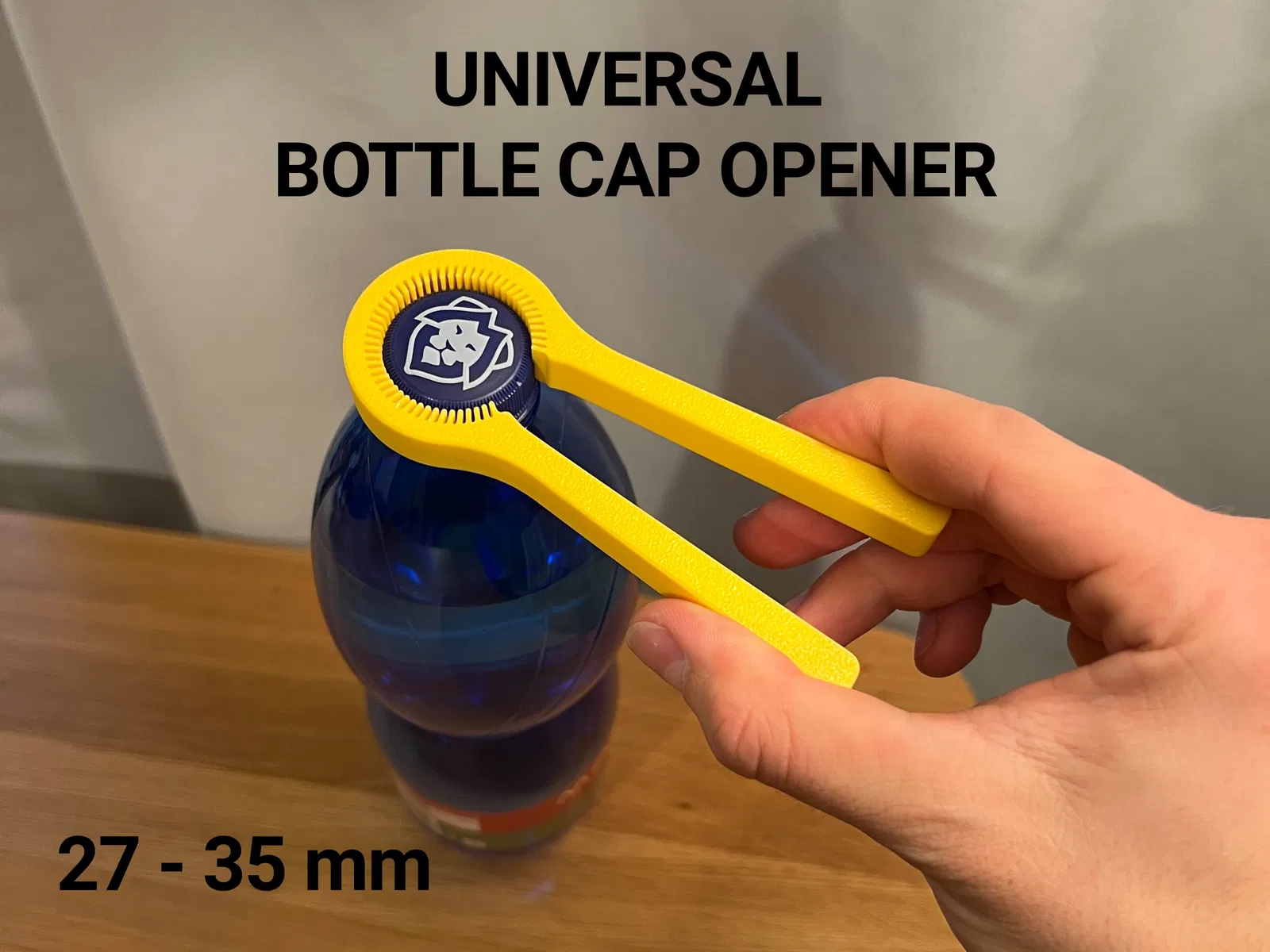 Tui thiết kế cái mở nắp chai đa năng này với cơ chế dạng đòn bẩy để mở mấy cái nắp chai nước có đường kính từ 27-35 mm dễ dàng.