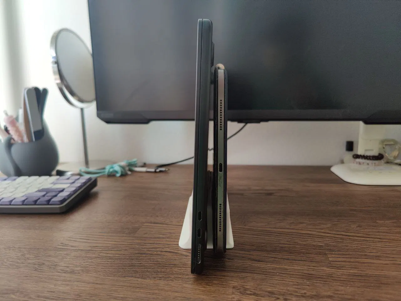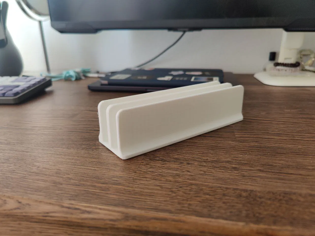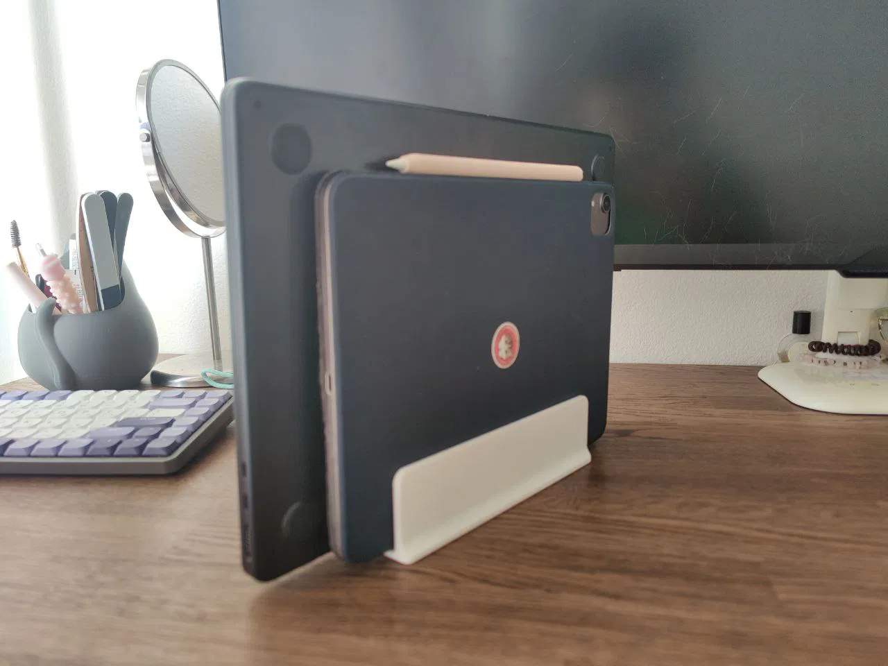 Chân đế dọc này là bản phối lại, vừa vặn cho MacBook Air M2 (và mới hơn) cùng iPad. Khe cắm có thể tùy chỉnh cho vừa vặn với ốp lưng và nhiều loại máy tính bảng khác nhau. In bằng PLA, hoàn thiện nhanh chóng.