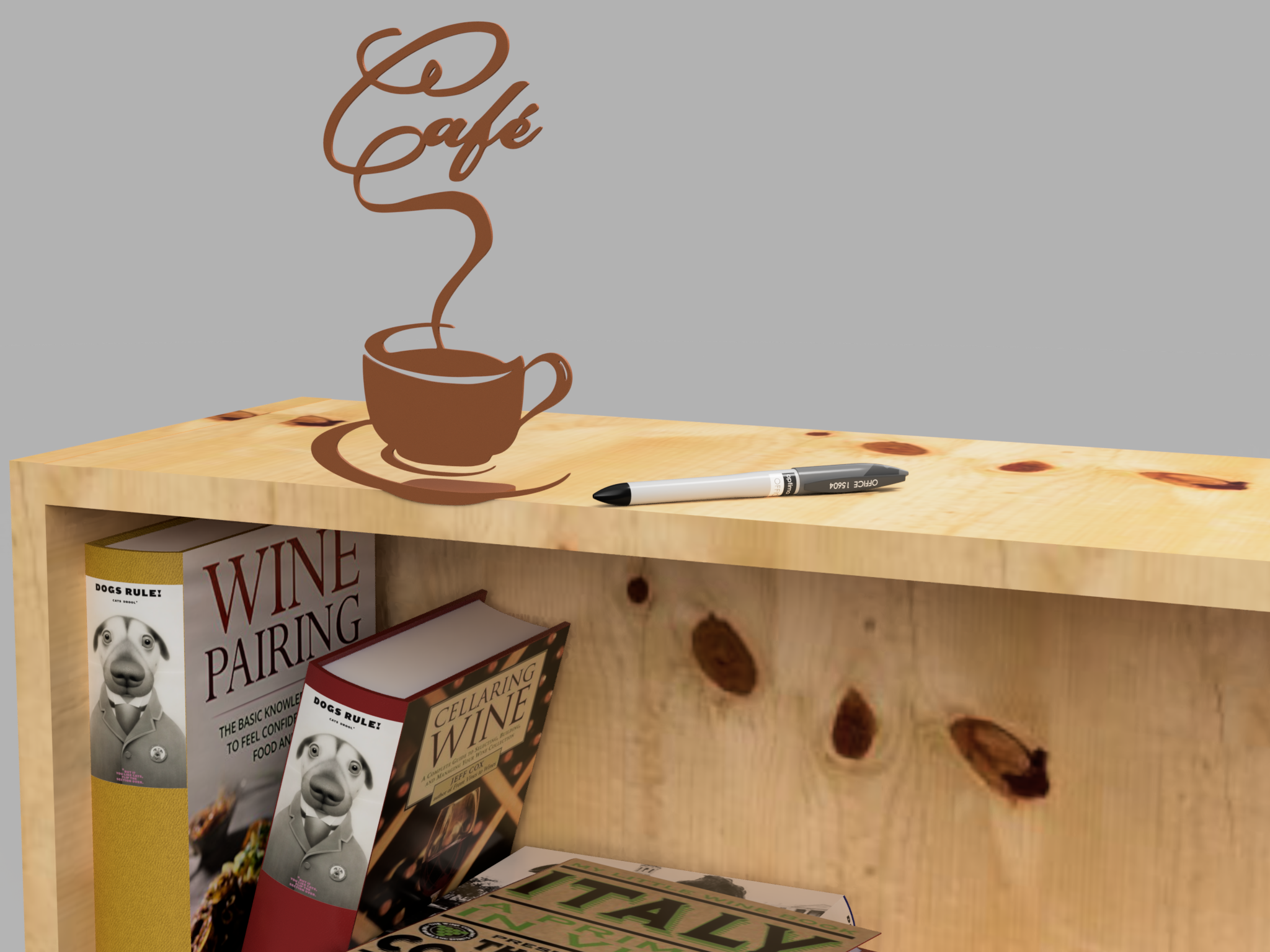 Biển hiệu trang trí hình ly cà phê, có thể đặt trên bàn hoặc treo tường. Có hai phiên bản cho bạn lựa chọn, dễ dàng sử dụng với keo dán.