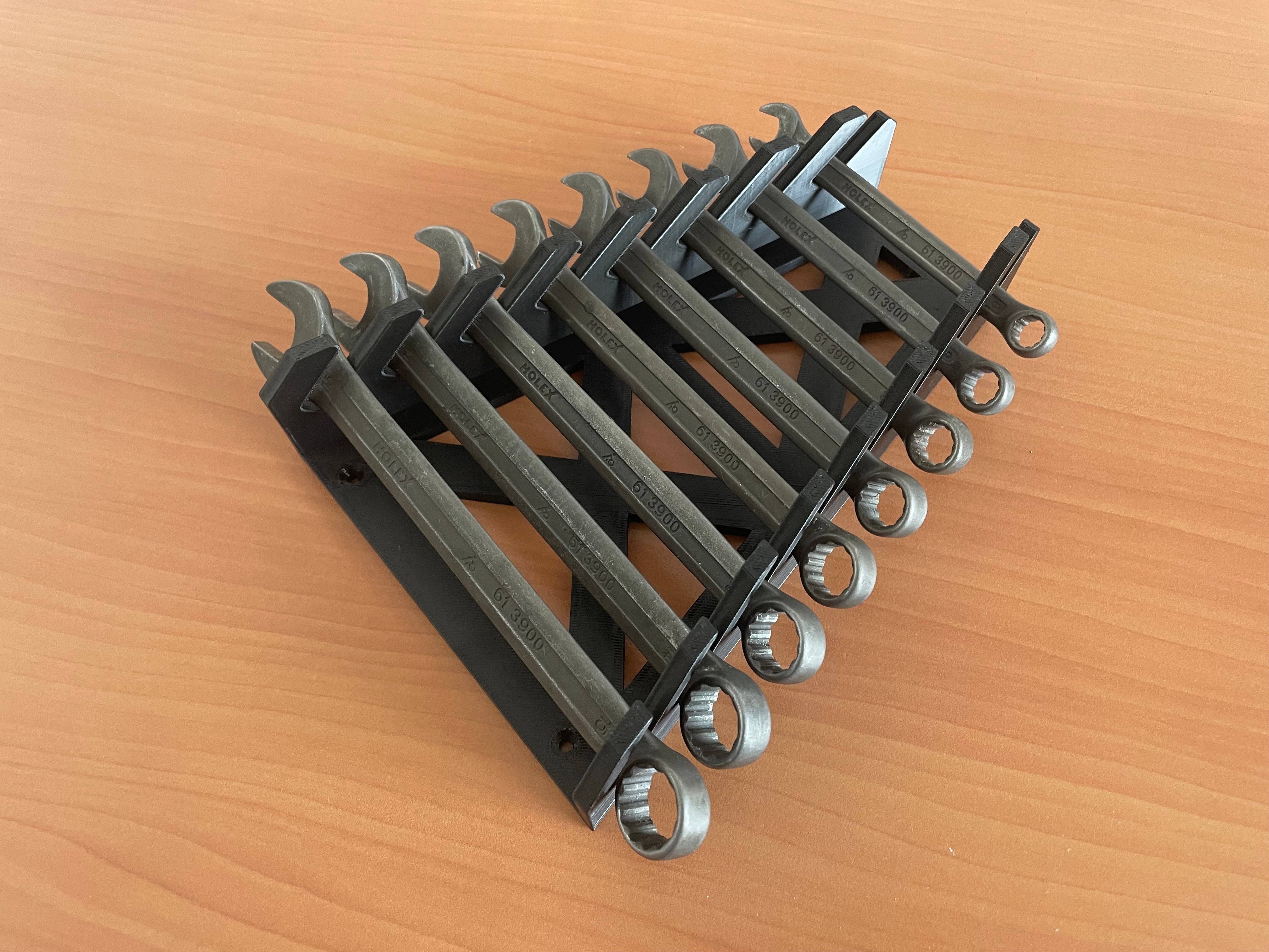 Bộ giữ/tổ chức 8 cái cờ lê, siêu tiện lợi cho không gian làm việc hoặc nhà để xe của bạn. Dễ dàng sắp xếp gọn gàng dụng cụ với thiết kế thông minh, giúp bạn tìm thấy cờ lê cần thiết một cách nhanh chóng.