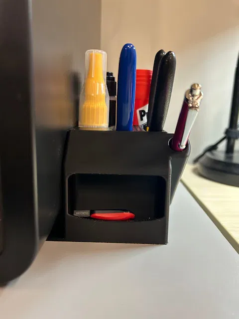 Tôi đã tạo ra cái giá đựng dụng cụ để bàn này cho máy Flashforge 5M Pro của mình. Cái giá này nằm một phần bên dưới đáy máy in để giữ cho nó cố định. Những dụng cụ tôi cần bao gồm khá đa dạng, chỉ là những thứ tôi cần dùng trong quá trình in ấn thông thường.