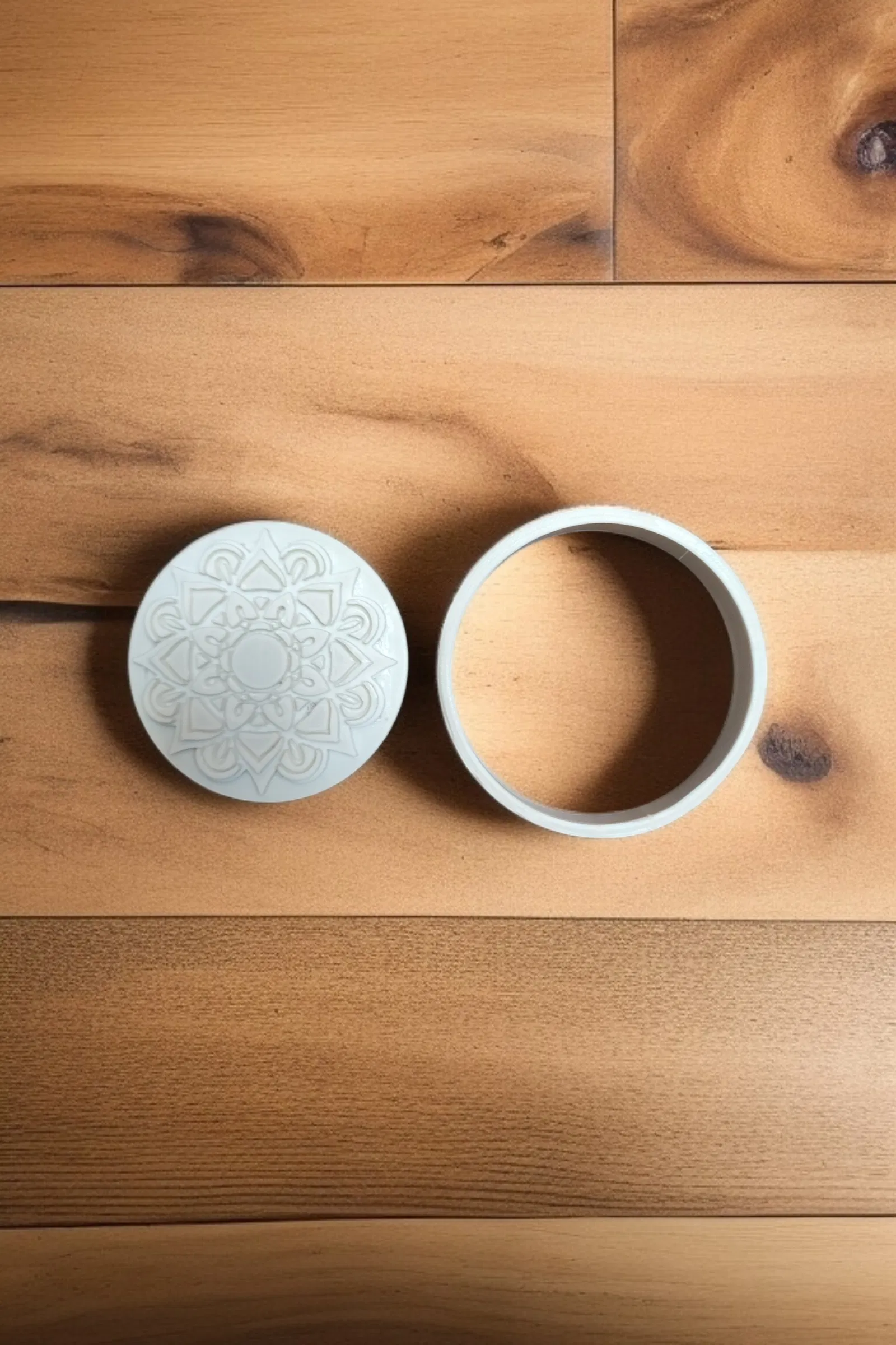 Khuôn Cắt Bánh Quy Gốm Mandala 01 - Một dụng cụ độc đáo giúp bạn tạo ra những chiếc bánh quy hình mandala đẹp mắt. Kích thước 10cm, dễ dàng sử dụng với các thông số in ấn được đề xuất.